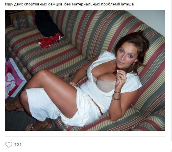 Сегодня мы приготовили для Вас сборник картинок под общим названием «Жещнины хотят секса» 20 (фото). Вы сможете увидеть сколько же различных дам страстно желают заняться сексом с молодыми парнями, о чем без особого стеснения или же неудобства пишут в социальных сетях.