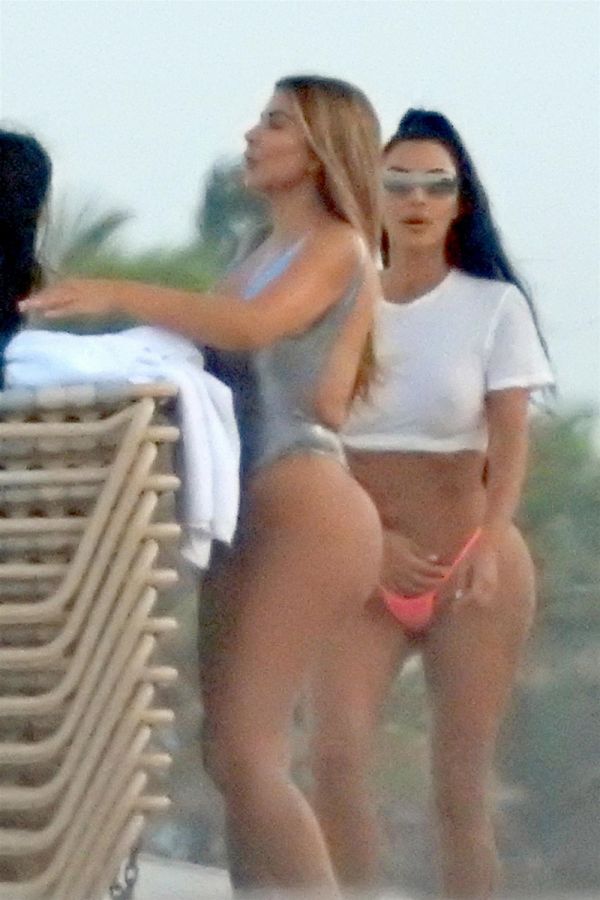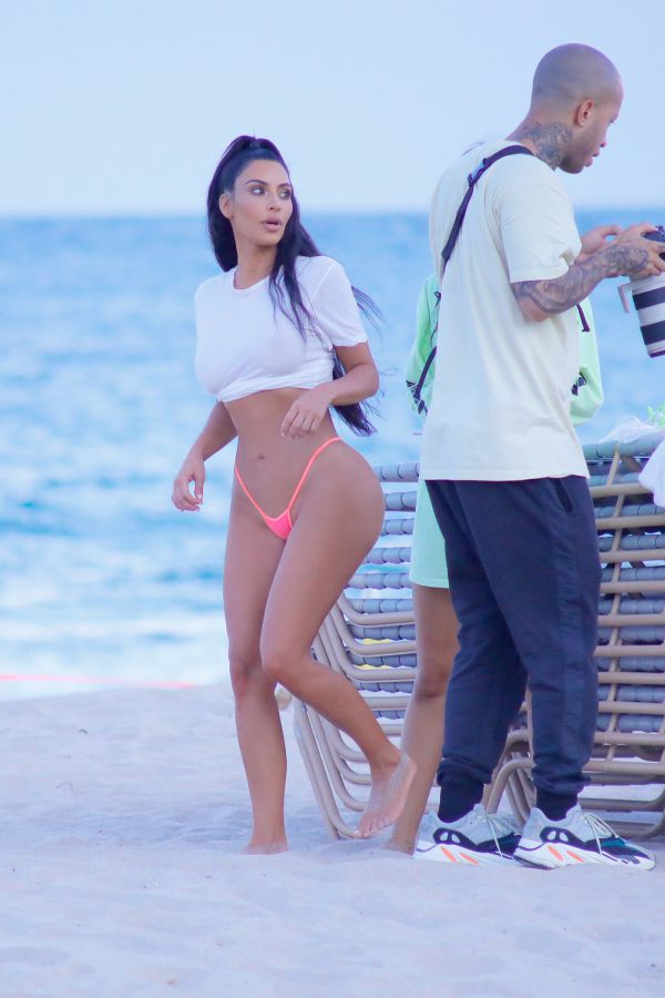 37-летняя американская звезда реалити-шоу, актриса и фотомодель Ким Кардашян (Kim Kardashian) в стрингах на пляже