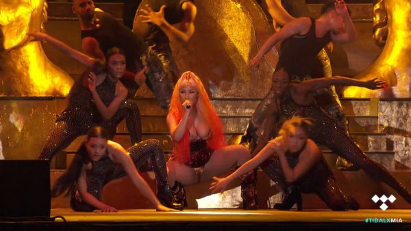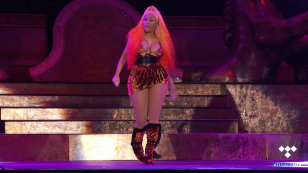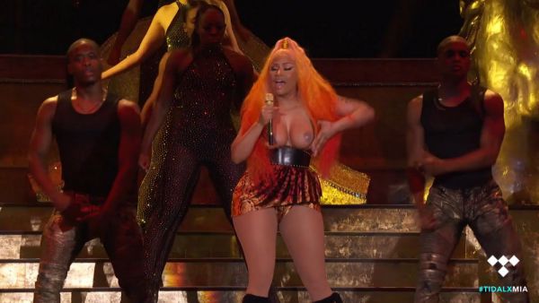 35-летняя американская певица, рэпер, автор-исполнитель и актриса Ники Минаж (Nicki Minaj) засветила грудь на концерте