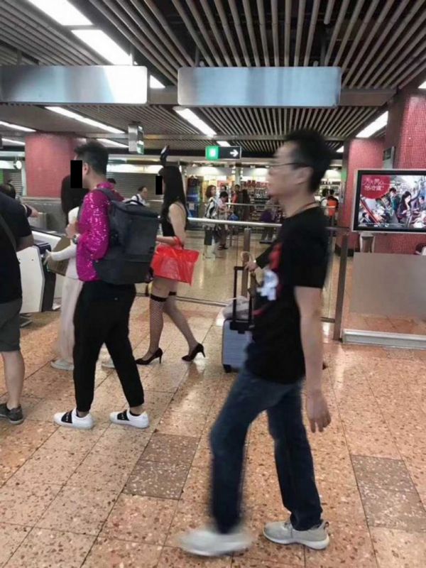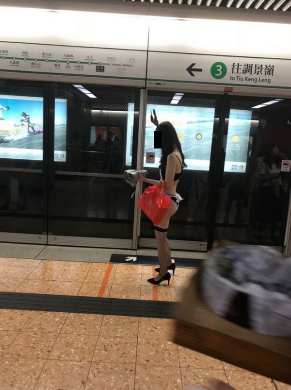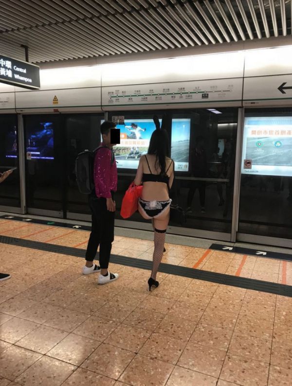 Девушка в нижнем белье и на шпильках в метро Гонконга