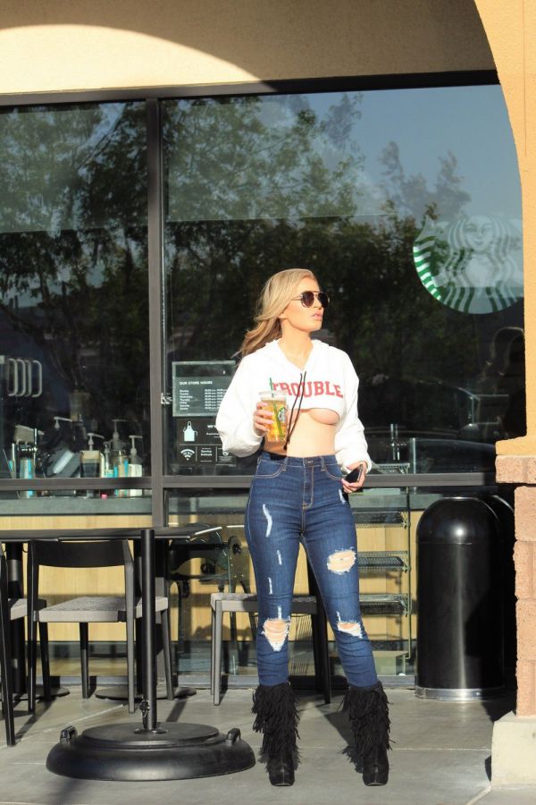 36-летняя бразильская модель Ана Брага (Ana Braga) в коротенькой кофточке посетила Starbucks в Калабасасе.