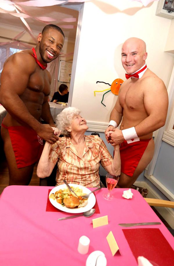 89-летняя Джоан из британского дома престарелых подбила администрацию нанять для обслуживания ужина обнаженных дворецких, то бишь стриптизеров с фартучками на хозяйстве. Когда ее просьбу удовлетворили, восторгам бабуль не было предела. Они кокетничали с официантами, постоянно хихикали и пытались невзначай развязать тесемки фартука. Старушки, как и их посетители, остались в восторге от устроенного шоу, и одна из них уже заказала себе такой подарок на следующий год, когда она будет праздновать 100 лет.