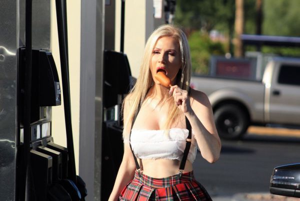 36-летняя бразильская модель Ана Брага (Ana Braga) в сексуальном наряде на заправке в Лос-Анджелесе.