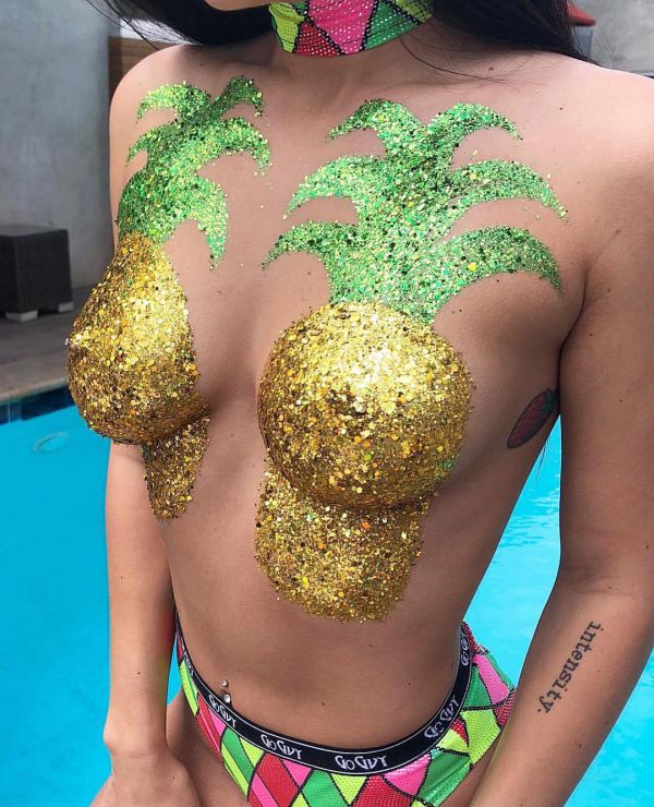 С приближение Рождества и Нового Года в интернете начинают появляться оригинальные идеи "нарядов", которые удивят друзей и знакомых. Например, в сообществе Go Get Glitter предлагают украсить грудь и задницу блестящими нарисованными ёлочными игрушками. Практичность такого наряда сомнительна, но всеобщее внимание к вашей персоне будет обеспечено;)