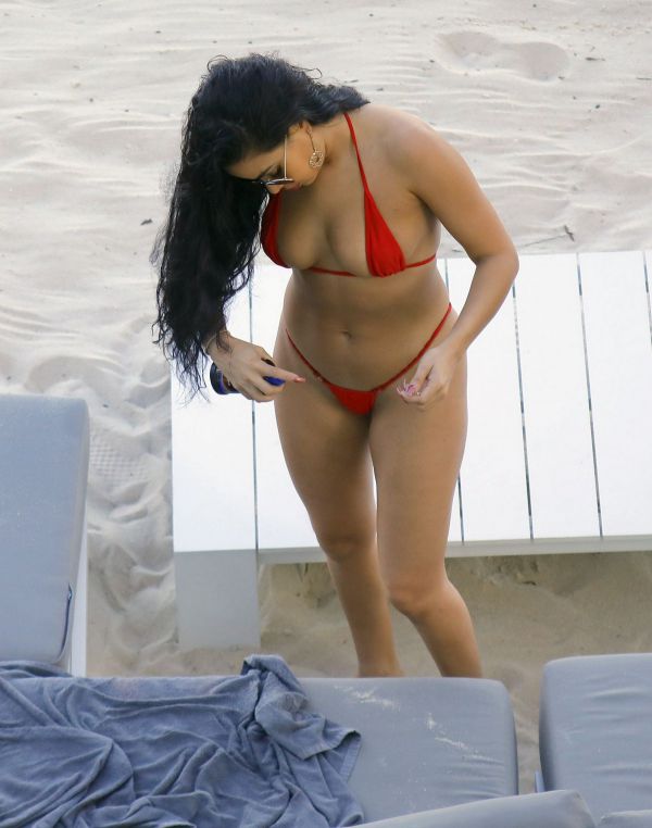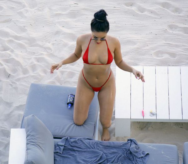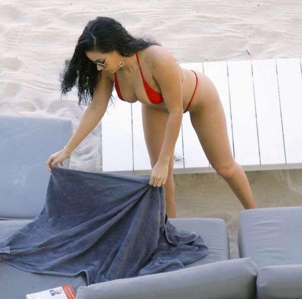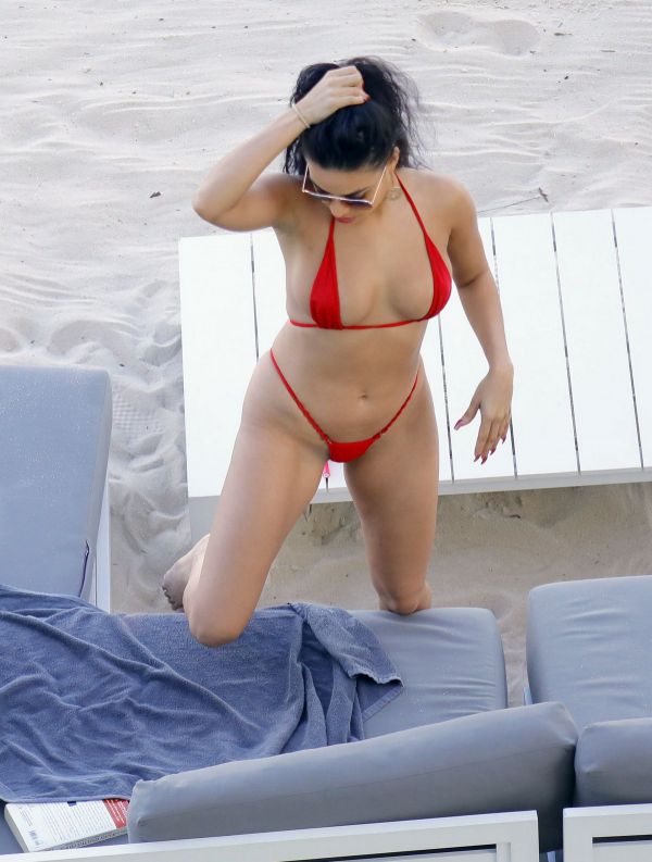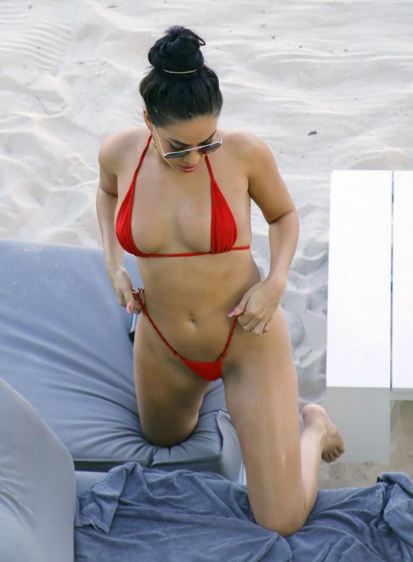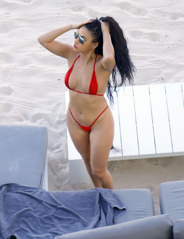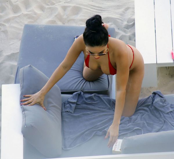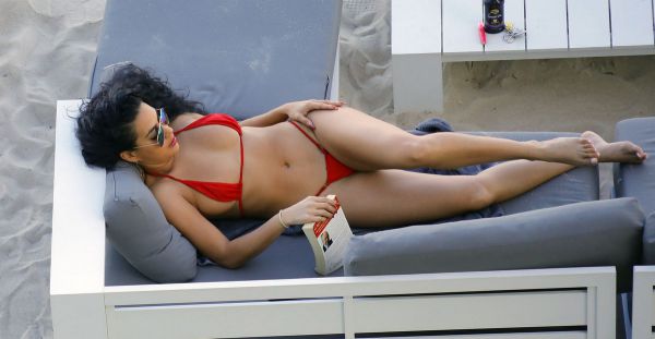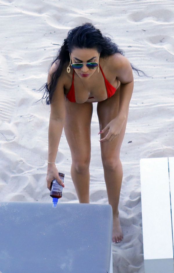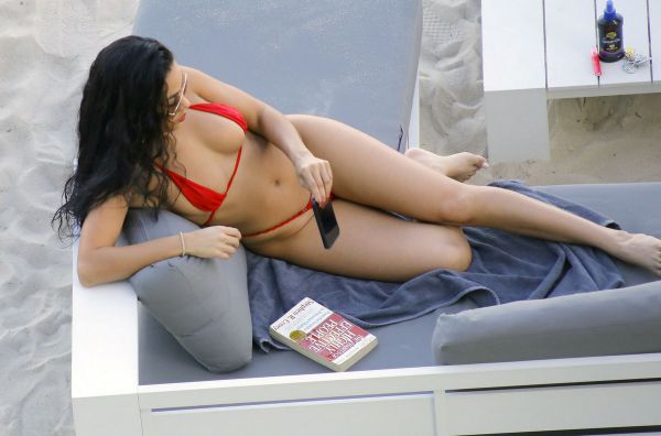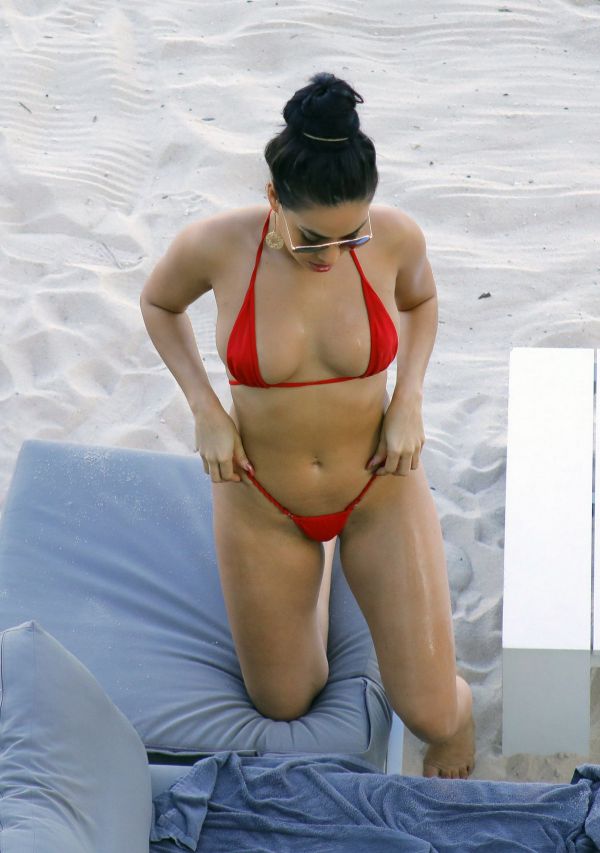 Модель Джулисса Нил (Julissa Neal) наслаждается отдыхом в красном крохотном бикини возле отеля в Майами-Бич.