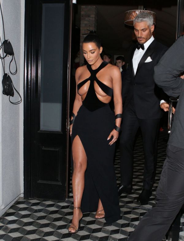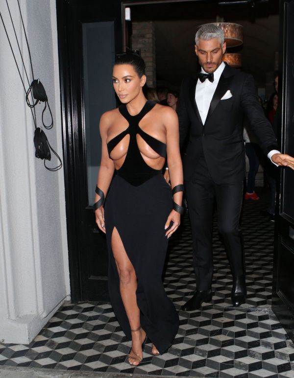 38-летняя американская звезда реалити-шоу, актриса и фотомодель Ким Кардашян (Kim Kardashian) в оригинальном платье