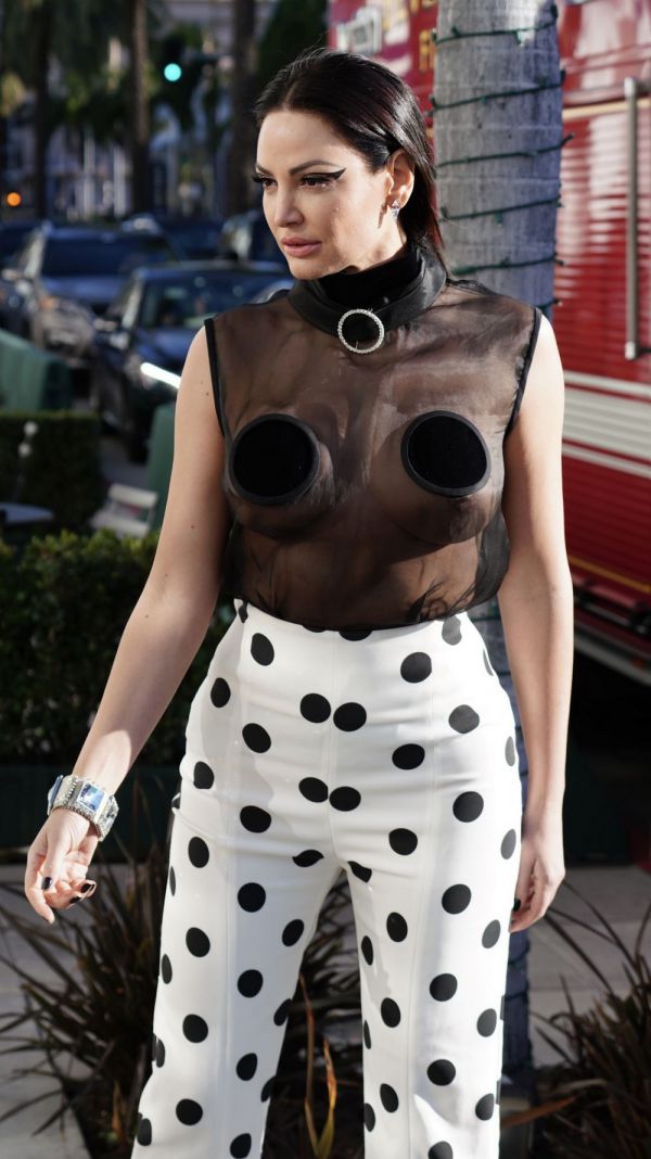 39-летняя албанская певица и актриса Блеона Керити (Bleona Qereti) в откровенном наряде позирует в Беверли-Хиллз.
