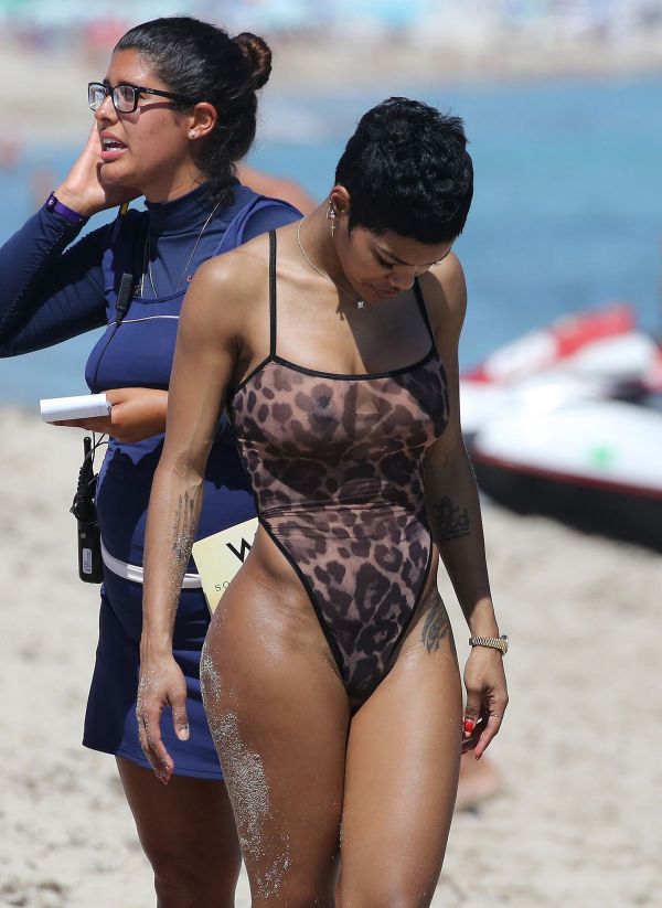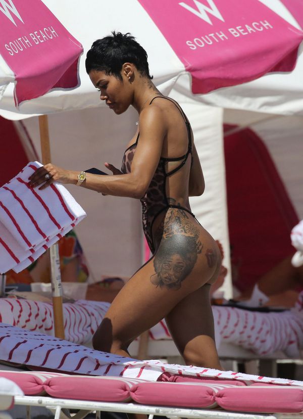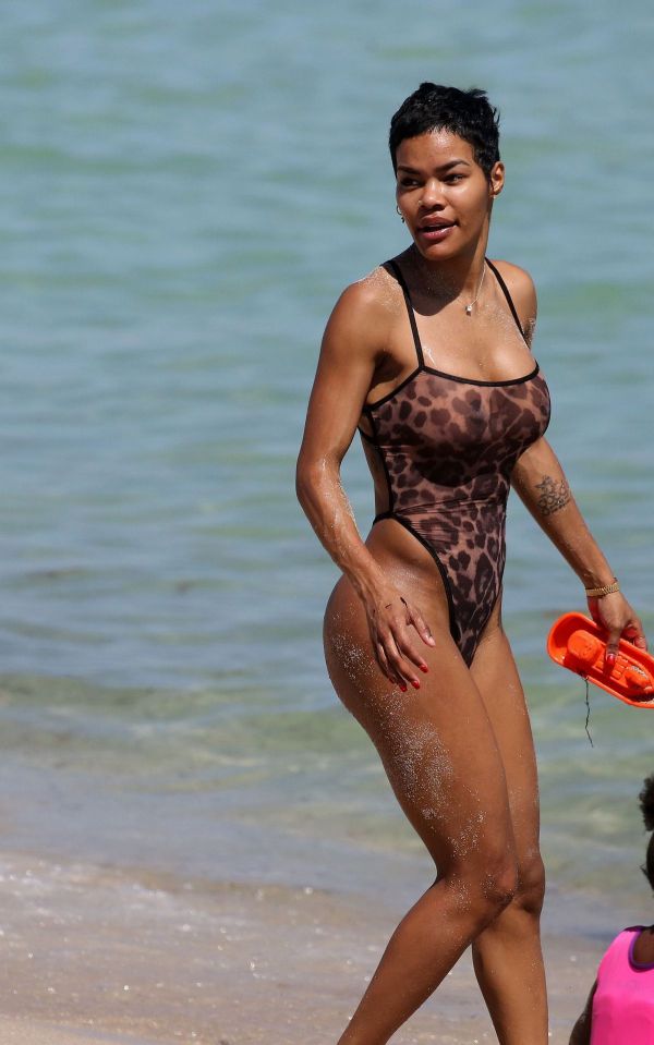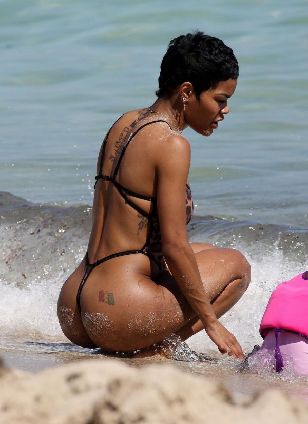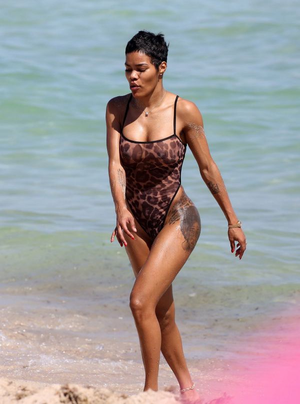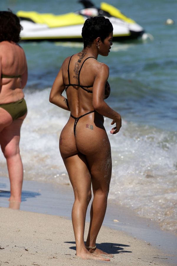28-летняя американская певица, актриса и танцовщица Тейяна Тейлор (Teyana Taylor) в сексуальном купальнике на пляже в Майами.