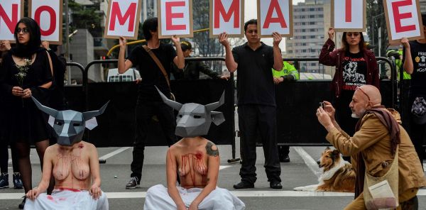 Зоозащитники устроили протест вблизи Плаза де Торос де Сантамария в Боготе, требуя запрета корриды. Шесть полуголых женщин-активисток олицетворяли собой быков, которых убивают во время кровавого развлечения. Защитники животных также готовят два законопроекта, которые запретят корриду и другие пытки животных в различных шоу.