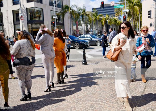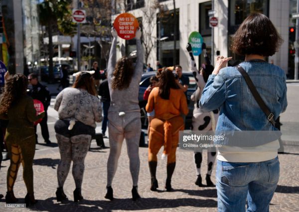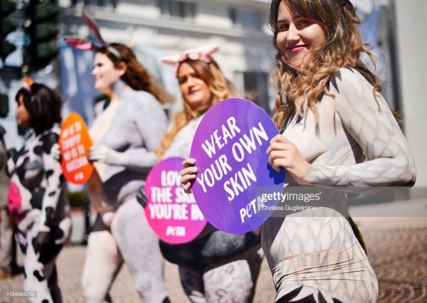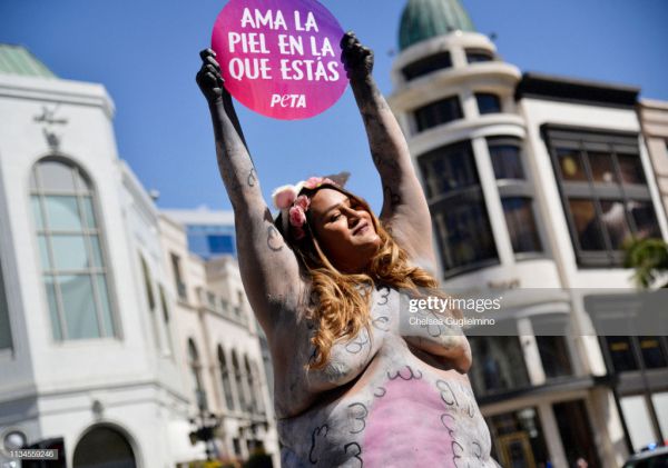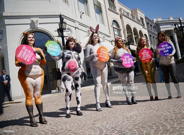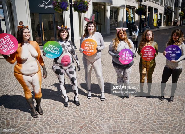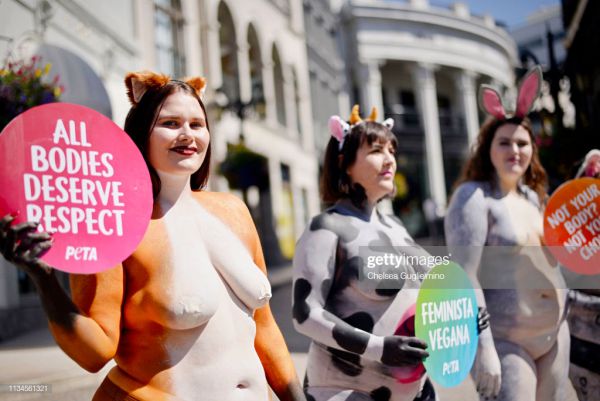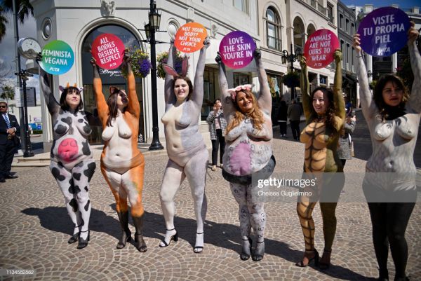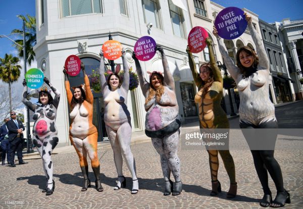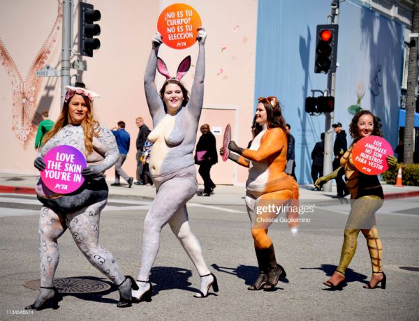 Несколько полуголых Plus-Size моделей из организации PETA вышли на улицу в Беверли-Хиллз, Калифорния, в честь Международного женского дня. Крупные дамы, на которых были только трусы, наклейки на сосках и краска, призывали не забывать в женский день и про животных. Организация PETA позиционирует свою деятельность как ведение борьбы за права животных. В основе зоозащитных принципов организации лежит убеждение о том, что животные имеют права и заслуживают того, чтобы их основные интересы были учтены, независимо от того, приносят ли они пользу людям.