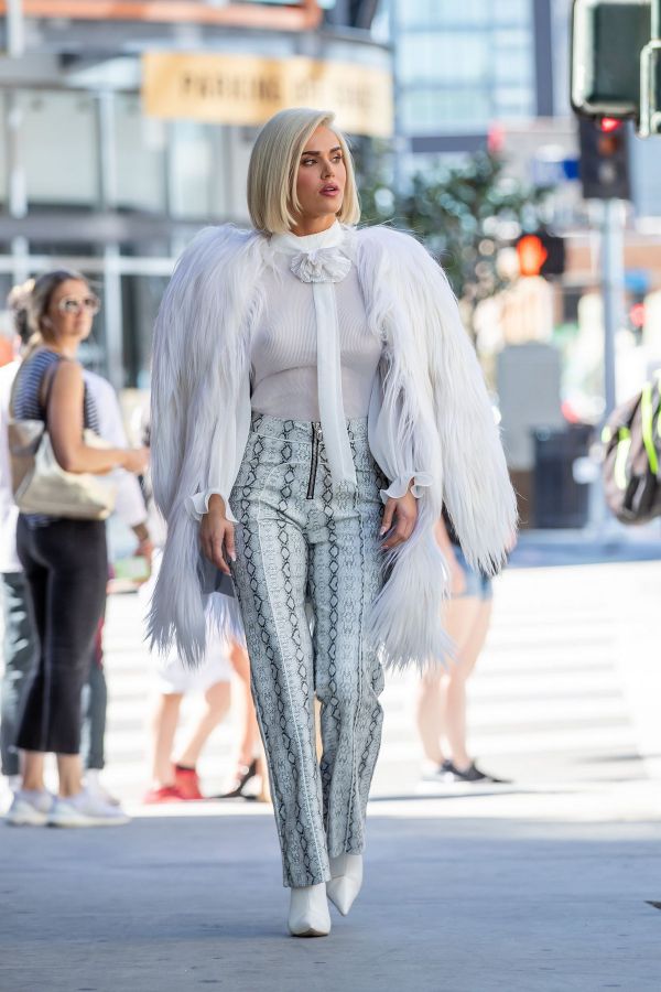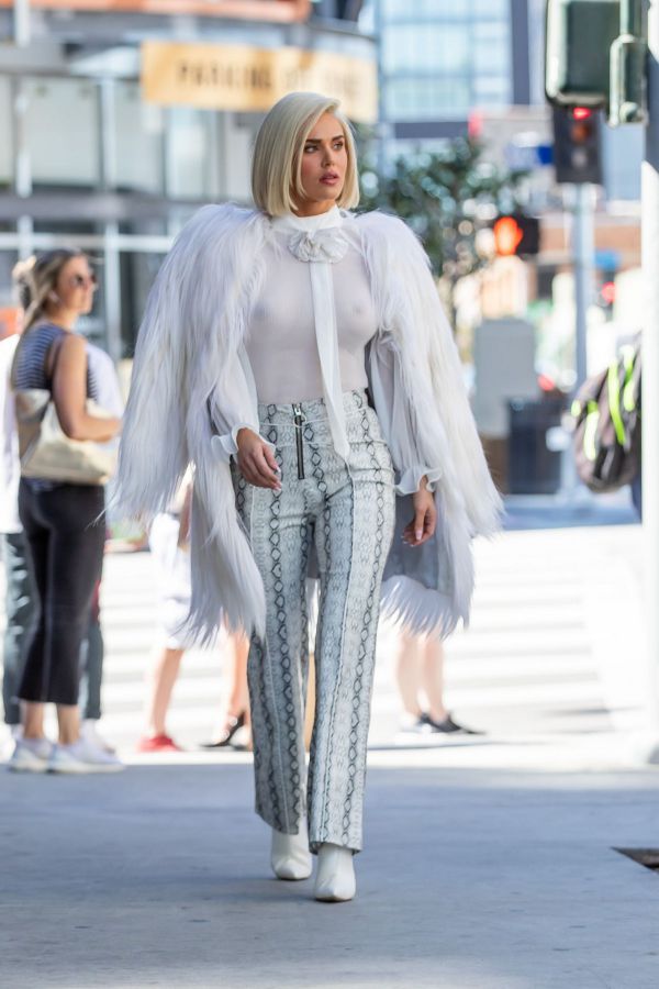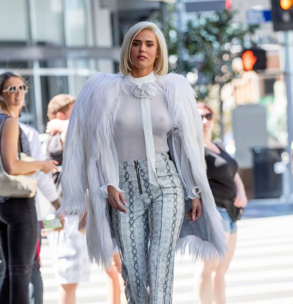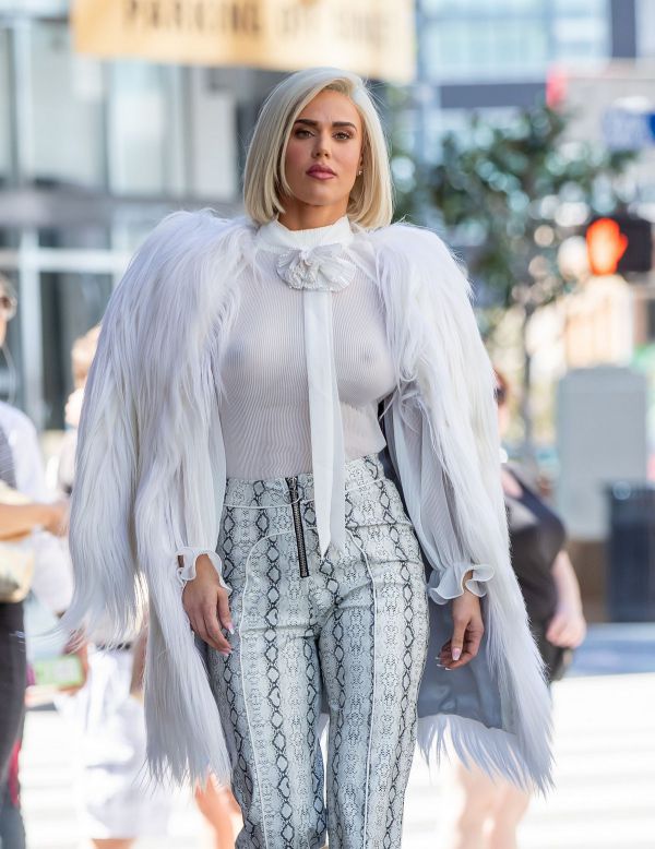 33-летняя американская модель, танцовщица, актриса и певица Си Джей Перри (CJ Perry) в просвечивающей блузке без бюстгальтера в Голливуде.