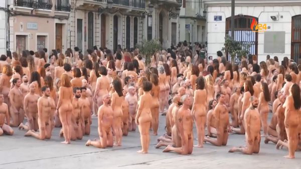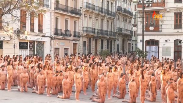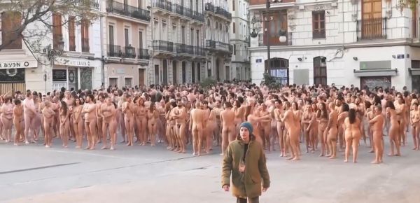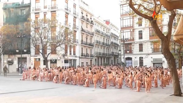 Группа собралась в центре испанского города в субботу и разделась во имя искусства и прав женщин. Нью-йоркский фотограф, который известен своими работами с обнаженными людьми, сказал, что съемка была приурочена к культурному фестивалю Intramurs в Валенсии.