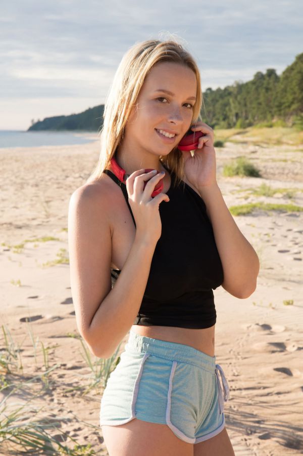 Увидев что на пляже нету никого, сочная блондинка решила воспользоваться такой возможностью и разделась догола. В таком виде она начала позировать красуясь собой и демонстрируя свое молодое тело и большие натуральные груди на фотокамеру.