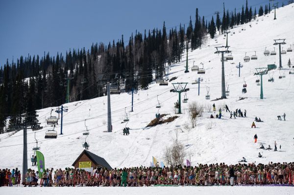 С 5 по 14 апреля на горнолыжном курорте Шерегеш в Кемеровской области состоялся 7-ой по счету фестиваль "GrelkaFest-2019", в котором приняли участие более 10 000 человек. В рамках мероприятия проходило множество концертов, конкурсов и соревнований. Главным событием фестиваля стал массовый спуск в купальниках. 1 761 человек в бикини, купальных, шортах и плавках спустились на лыжах и сноубордах с горы Зеленая. Рекорд был официально зарегистрирован представителем книги рекордов России.