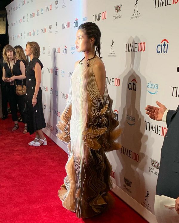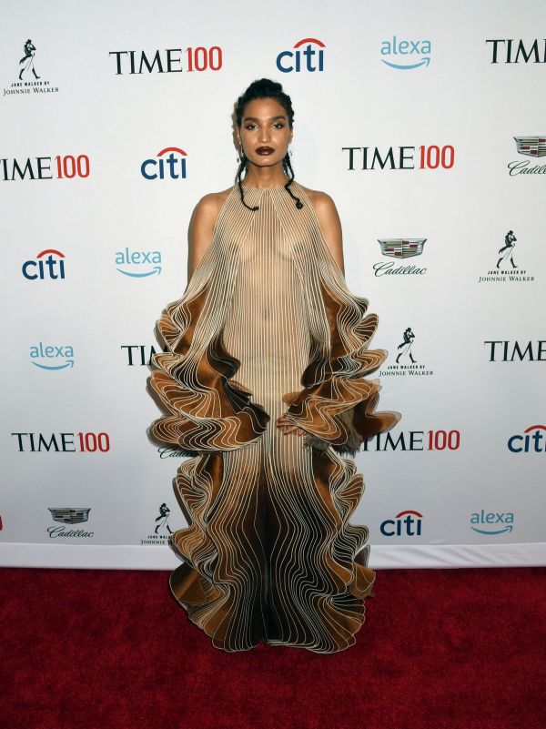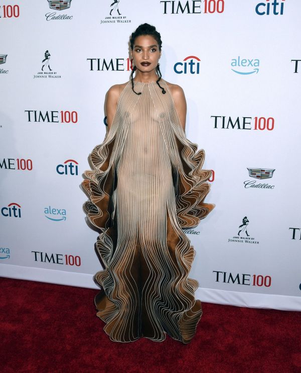 24-летняя американская актриса и модель Индия Мур (Indya Moore) в просвечивающем платье на гала-концерте 2019 Time 100 в Манхэттене, Нью-Йорк.