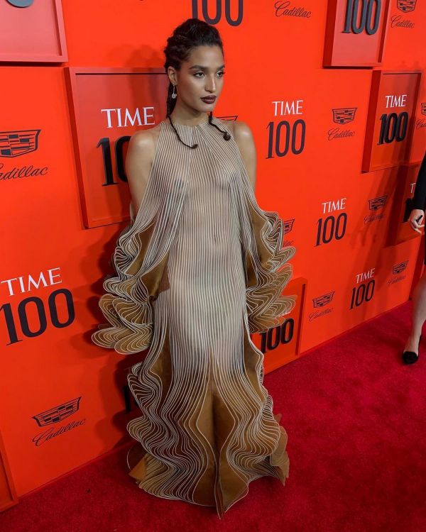 24-летняя американская актриса и модель Индия Мур (Indya Moore) в просвечивающем платье