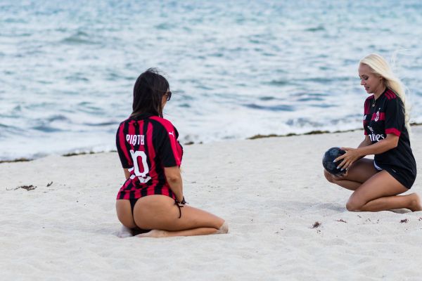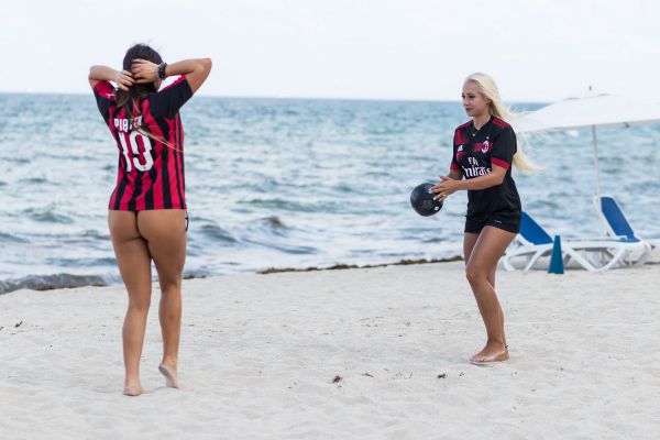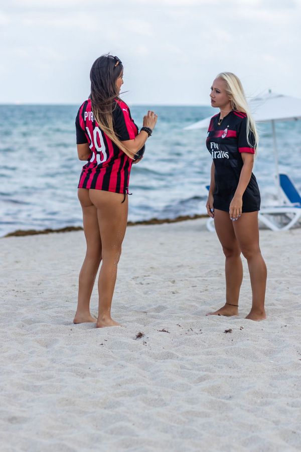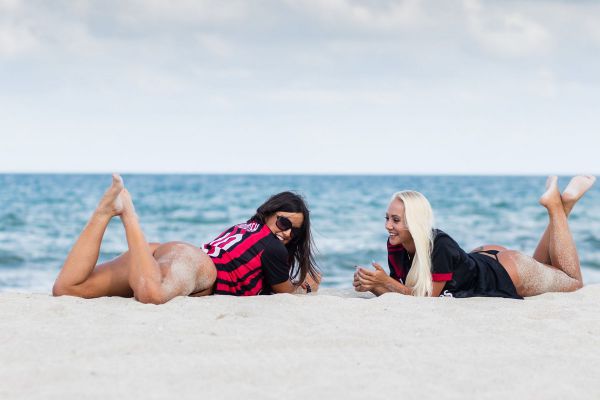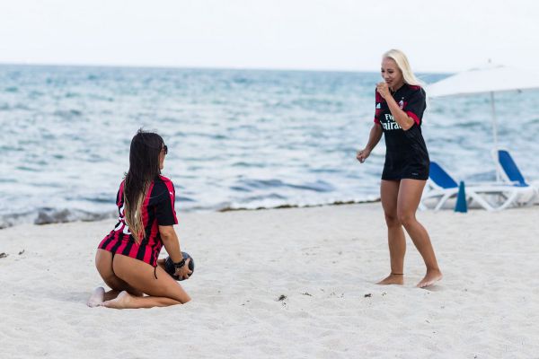 Модели Клаудия Романи и Дейзи Джей устроили фотосессию на пляже в Майами в поддержку "Милана" после поражения в матче с "Торино".