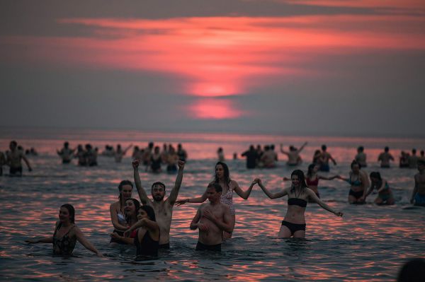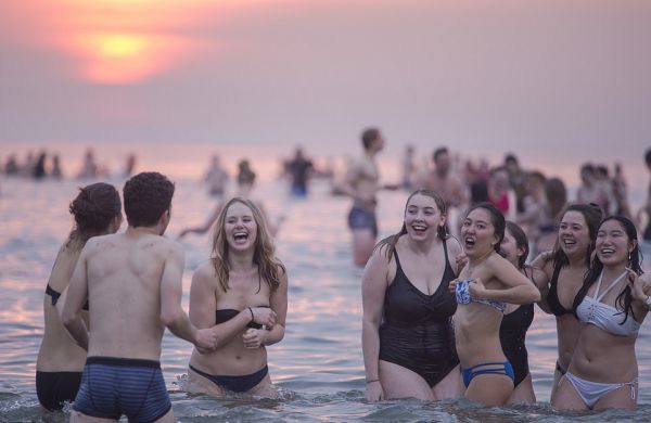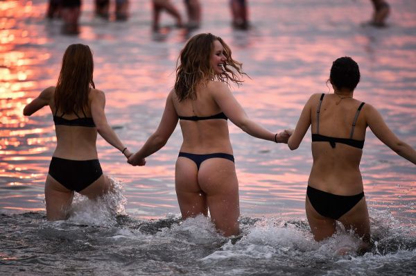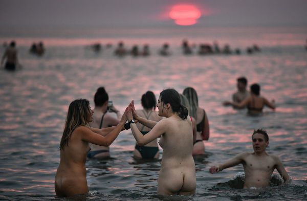 Студенты Сент-Эндрюсского университета отметили начало нового месяца, приняв участие в традиционном первомайском купании в Северном море. Молодые люди в купальниках, а некоторые голышом, окунулись в холодную воду в 5:30 утра. Считается, что первомайское купание способствует удаче на экзаменах. Первомай традиционно отмечается как начало весны и празднуется уже тысячи лет в Великобритании и других странах Северного полушария.