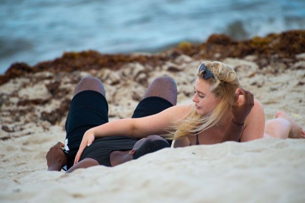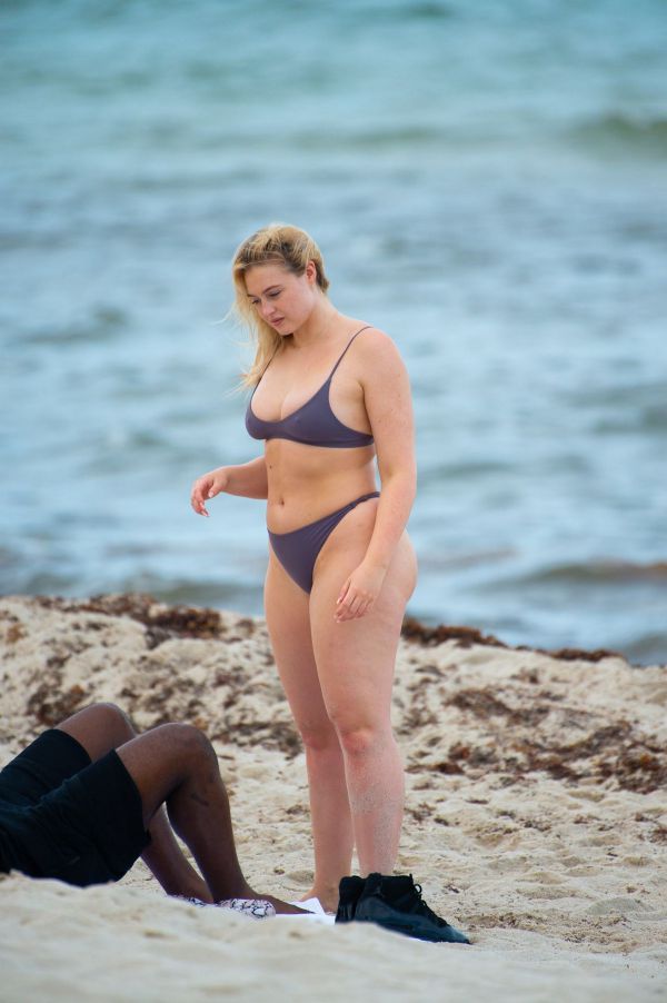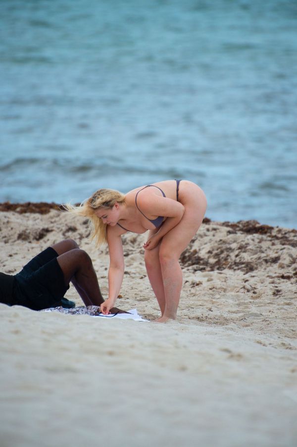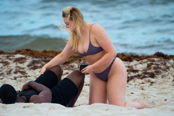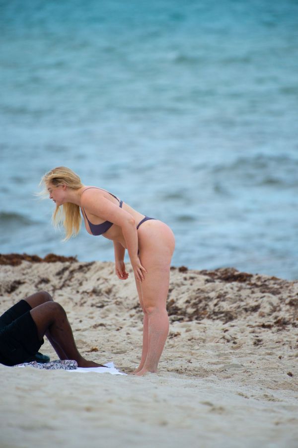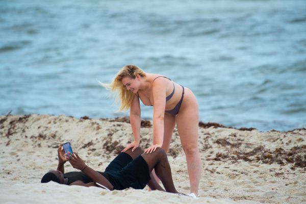 28-летняя английская манекенщица и фотомодель Искра Лоуренс (Iskra Lawrence) с бойфрендом на пляже в Майами.