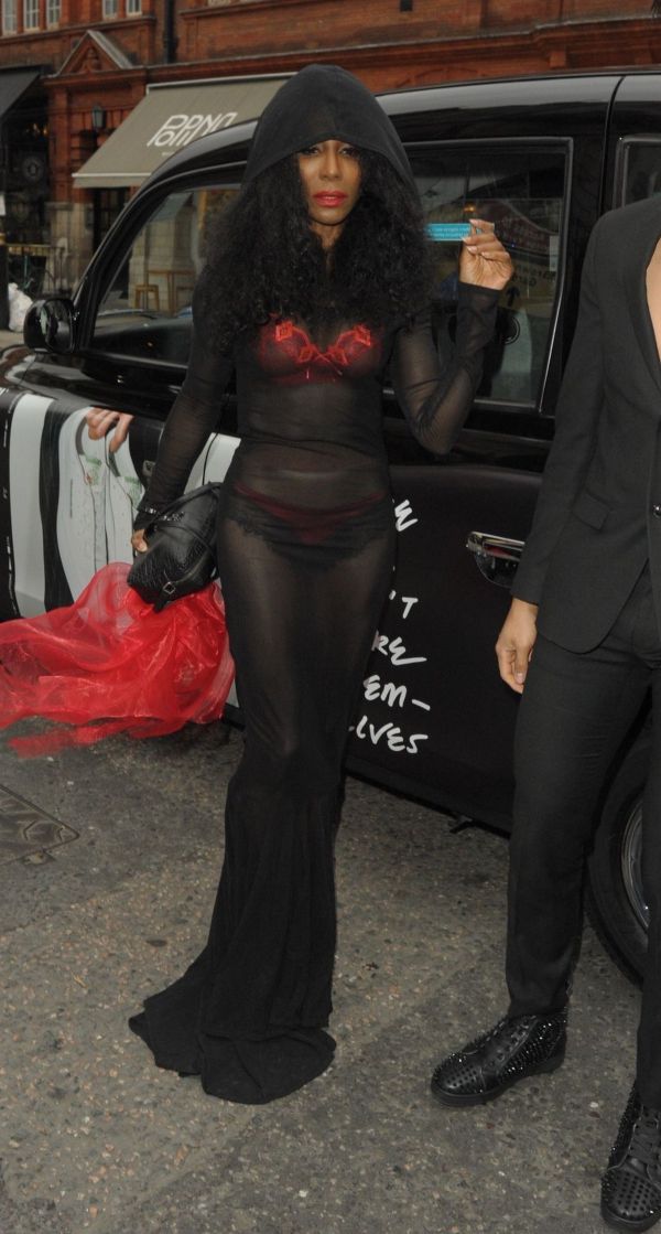 55-летняя американская певица и автор песен Синитта (Sinitta) в просвечивающем платье