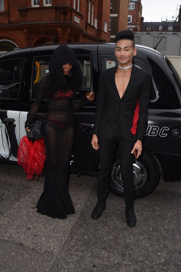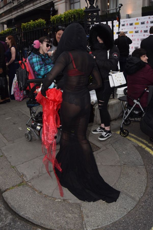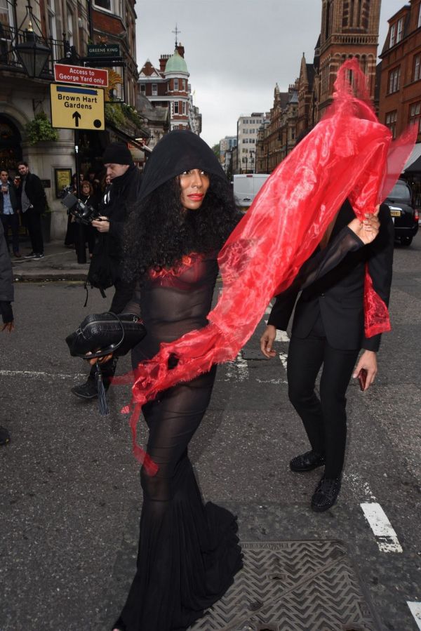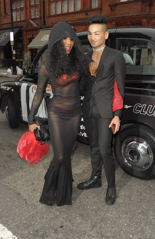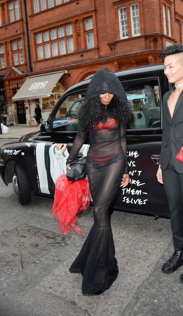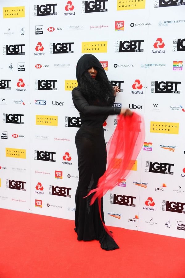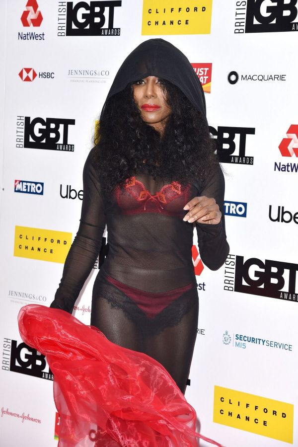 55-летняя американская певица и автор песен Синитта (Sinitta) в просвечивающем платье на British LGBT Awards, состоявшейся в отеле Marriott в Лондоне.