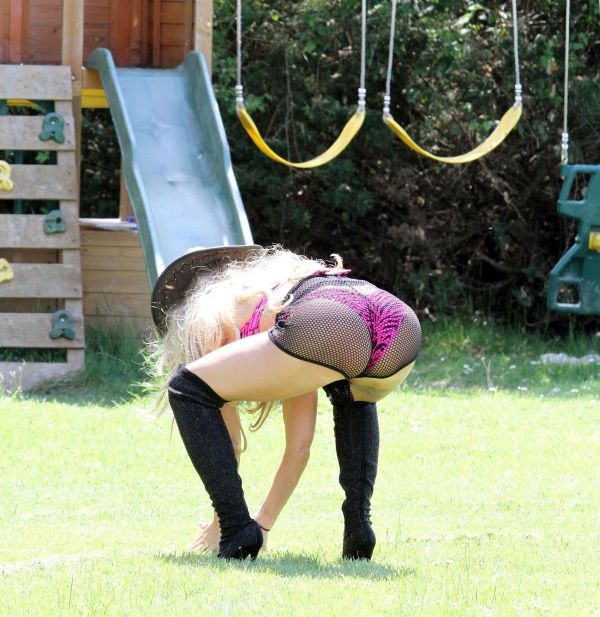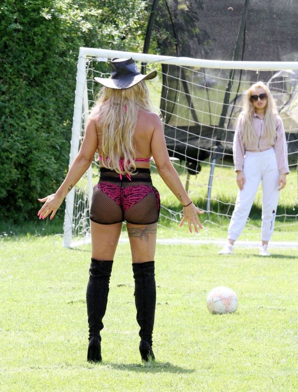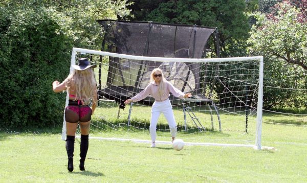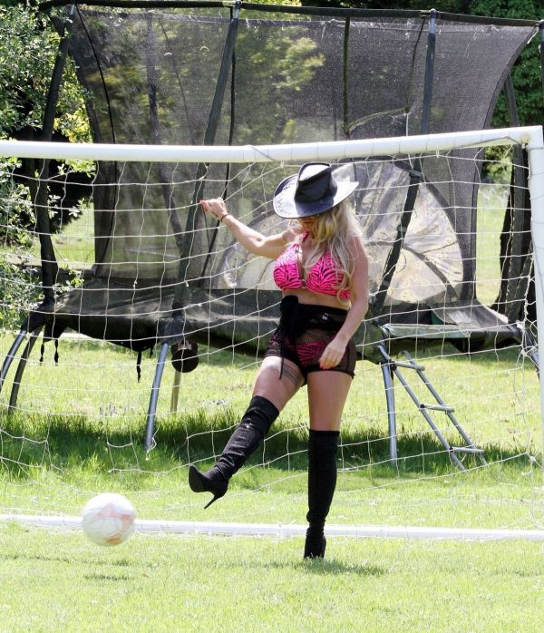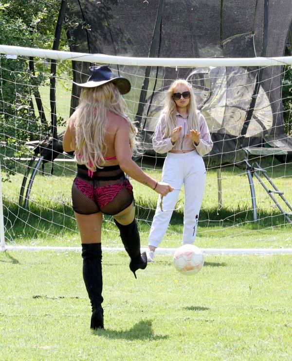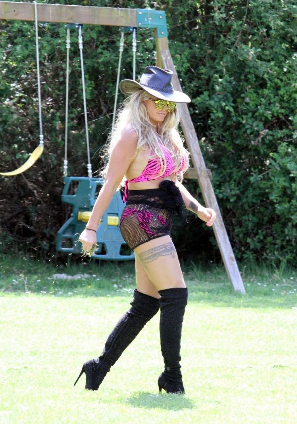 41-летняя британская певица, актриса, медийная личность и фотомодель Кэти Прайс (Katie Price) прокатилась на газонокосилке и сыграла в футбол во время отдыха в Лондоне.