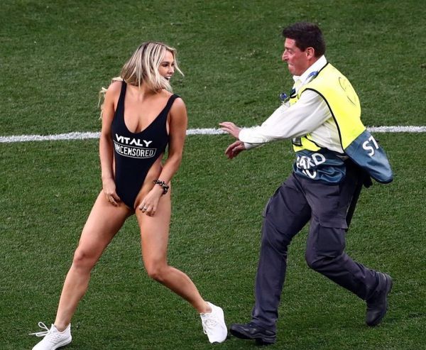 Об этом выбежавшая на поле финала ЛЧ девушка рассказала на своей странице в Instagram. Там Кинси Волански разместила два видео. На первом запечатлен момент, когда она выбегает на поле в черном купальнике, а на втором – как охрана ведет ее с руками за спиной в подтрибунном помещении. Модель сопроводила данную публикацию объяснением своего поступка: «Жизнь дана, чтобы жить». Девушка предложила всем людям делать «сумасшедшие вещи», которые они запомнят навсегда.