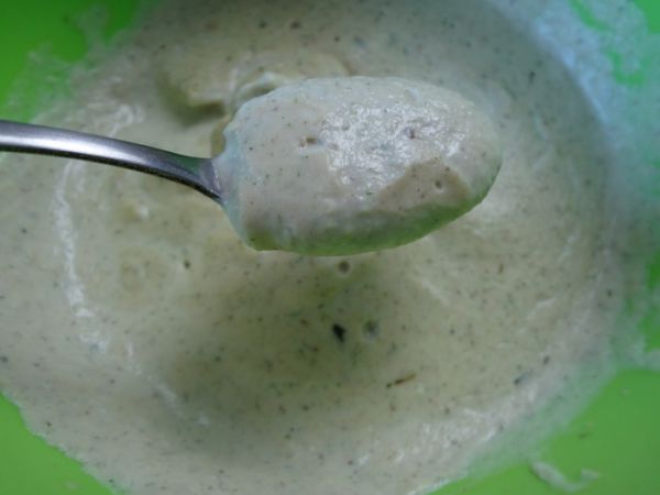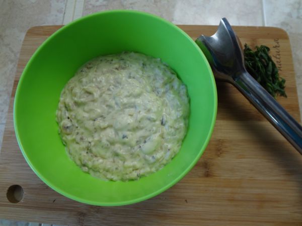 Я добавил еще пару свежих листиков тархуна и взбил соус блендером до однородной массы, но его можно подавать в любом виде, даже с кусочками грибов, кому, как нравится.