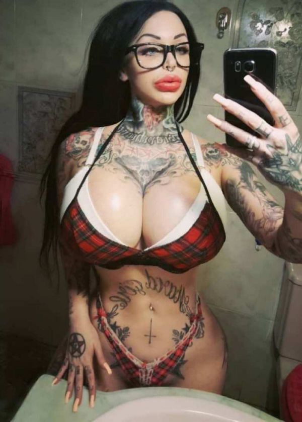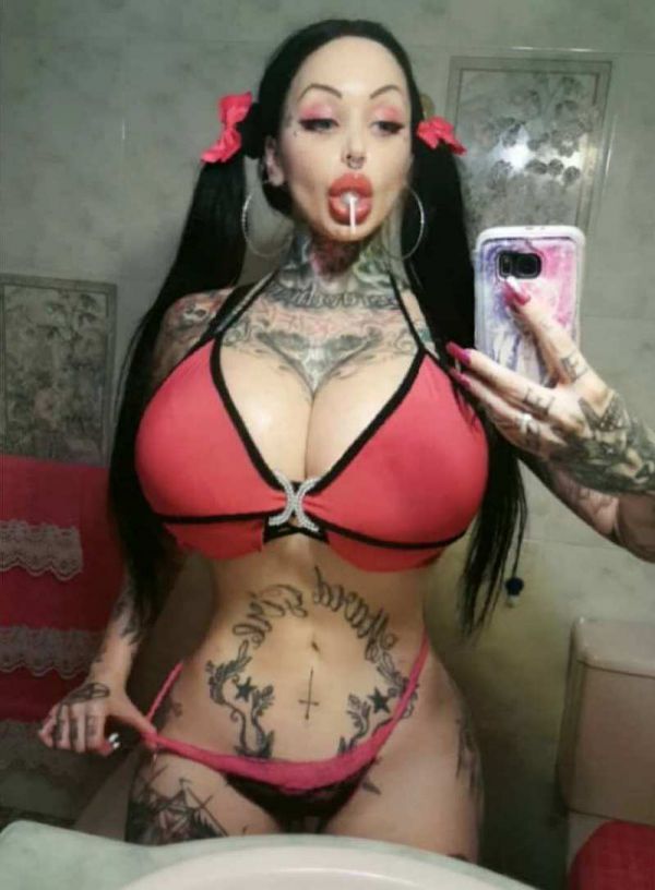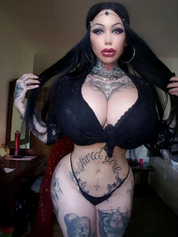 Большинство Бимбо представляют из себя гламурных накачанных силиконом блондинок, но Бимбо из Испании по имени Люцифера (Lurcifera) отличается от коллег по цеху. У нее тоже здоровенные бидоны и свисток вместо губ, но, по словам жгучей брюнетки Люциферы, она сатанистка. Одним словом, полный треш.