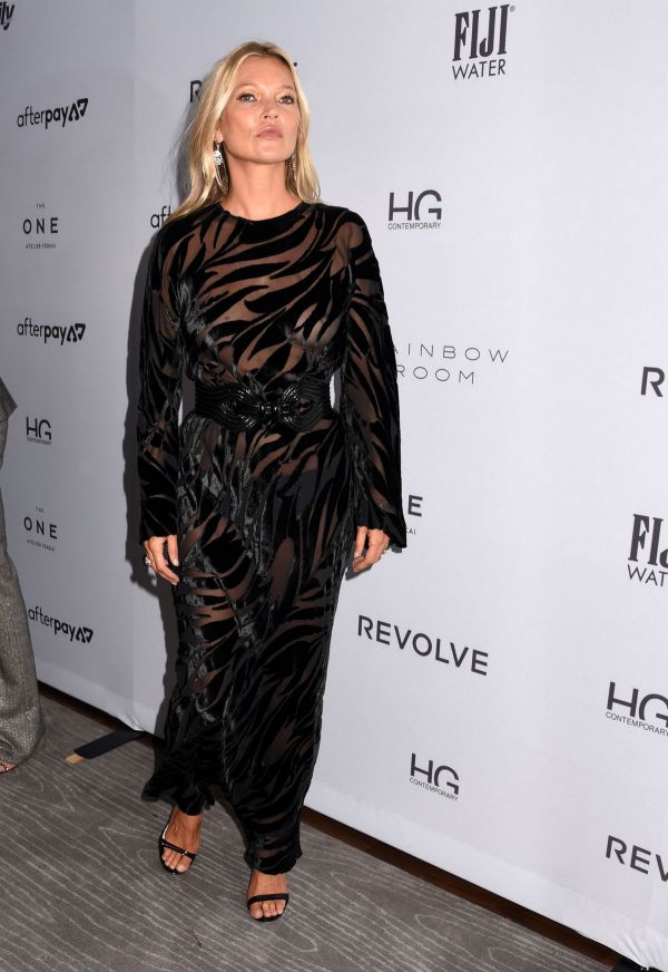 45-летняя британская супермодель и актриса Кейт Мосс (Kate Moss) в просвечивающем платье на Daily Front Row Fashion Media Awards в Нью-Йорке.