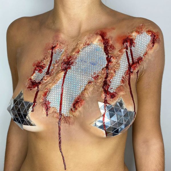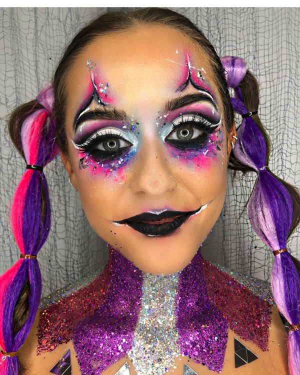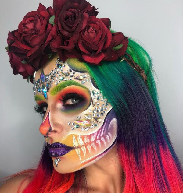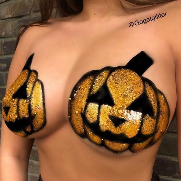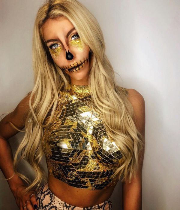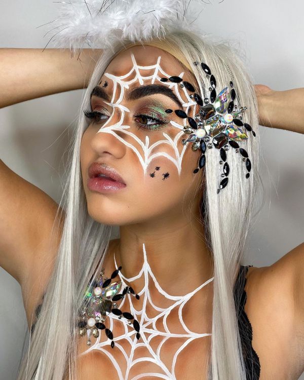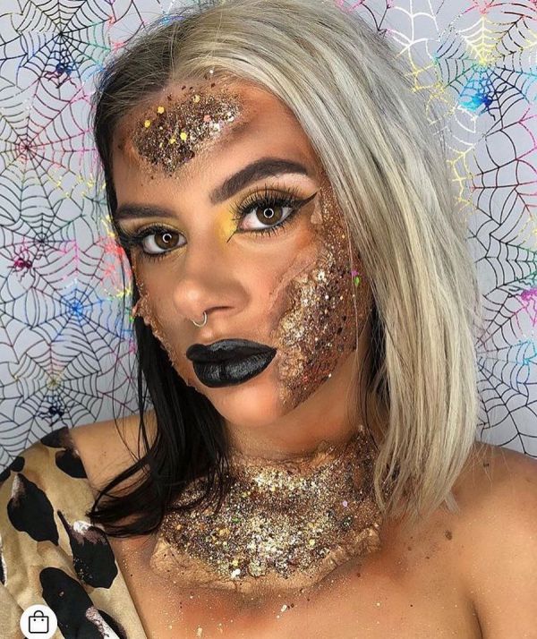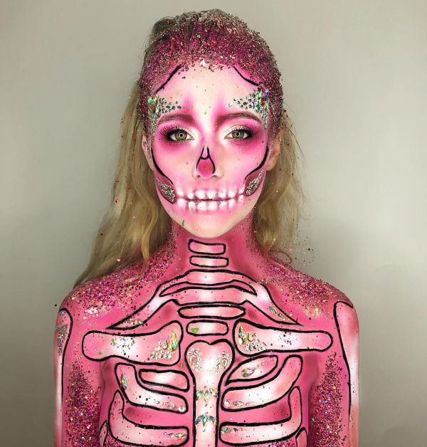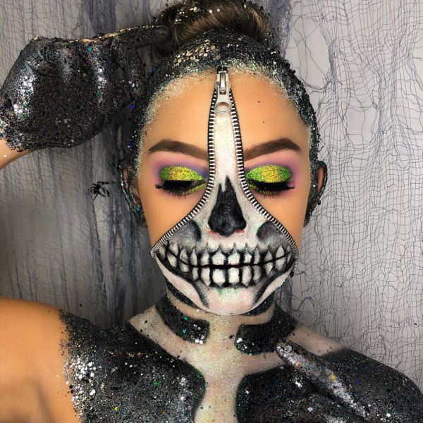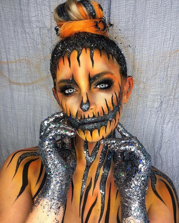С приближением Хэллоуина появляется все больше идей, как оригинально украсить свое тело к этому празднику. На страничке Go Get Glitter в Instagram много интересных идей оригинального макияжа. Хоть блестки и стразы не очень практичны в использовании, выгладит такой макияж очень эффектно.