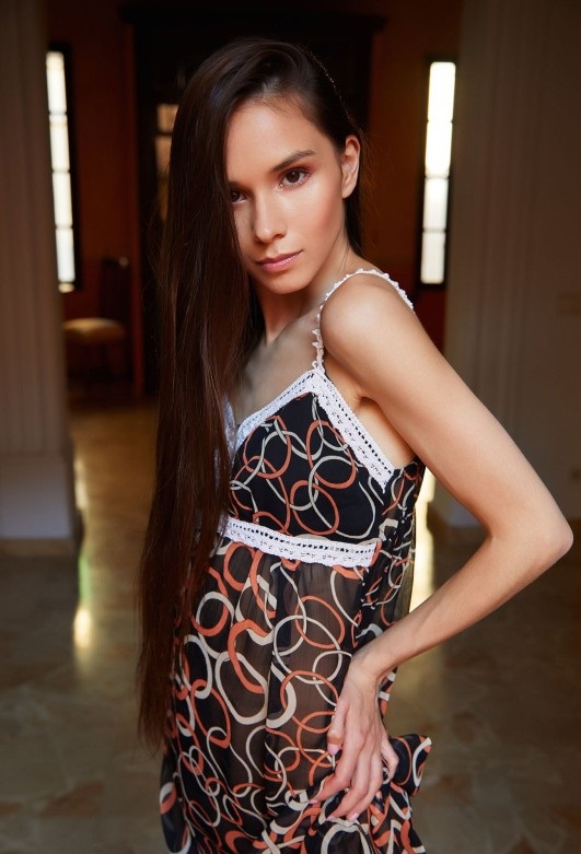 Строя глазки привлекательному фотографу, худая девушка с длинными ногами стягивает с себя платье и чередует разные ракурсы, параллельно поглаживая тощую попку руками...