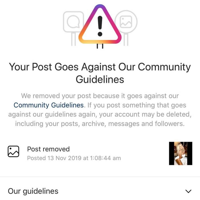 В качестве эксперимента Джина переключила свой пол в социальной сети на мужской и утверждает, что с тех пор ни одна из ее фотографий не была удалена. Плюс ко всему она приобрела еще 10 000 подписчиков и сейчас на ее аккаунт подписаны более 160 тыс человек.