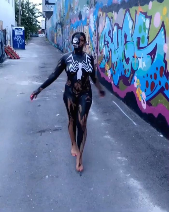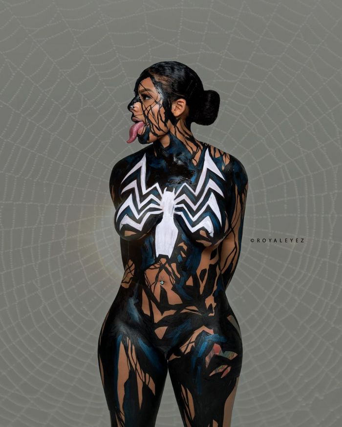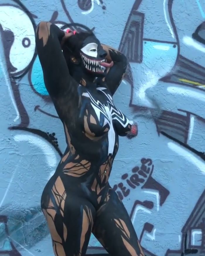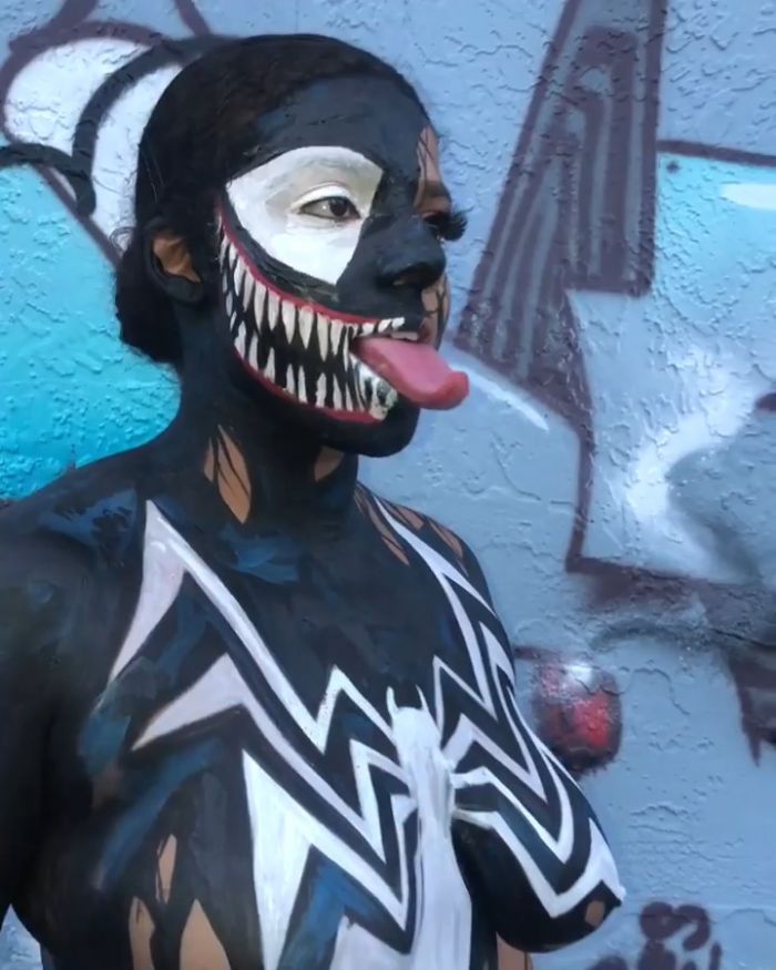 Микайла, число подписчиков которой превышает 2,2 миллиона человек, прошлась перед камерой по улице полностью голой, использовав для «костюма» Венома одну лишь краску для тела. Особенно пользователей впечатлил ее язык — длиной, как сообщает британское издание The Mirror, около 16,5 сантиметров. Cобственно, благодаря языку 21-летняя Саравиа и прославилась в сети. И он пришелся очень кстати для образа Венома.Саравиа зарабатывает от 900 до 3000 долларов за пост. Ее годовой доход составляет в среднем 105 тысяч долларов.