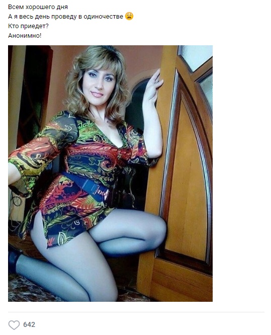 Женщины хотят секса, часть 60 Запостил: Viking,23-03-2020, 00:00вМного девушек (+18) В подборке "Женщины хотят секса" вы увидите незамужних девушек и женщин, все они в активном поиске мужчин, мужчины им нужны для приятных встреч без обязательств и лишних вопросов.Предыдущая часть ТУТ Женщины, хотят секса, хотят, часть 60 Нравится 64 Не нравится 6 Комментарии (1) Добавить комментарий Прокомментировать Введите два слова с картинки: Отправить #1 Андрей Масленников Посетитель 26 марта 2020 17:03 0 Как с вами свезаца Ответить