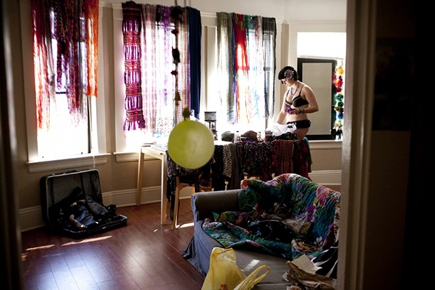 Иден в квартире друзей в Сан-Франциско примеряет откровенные наряды, которые недавно купила.