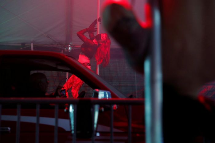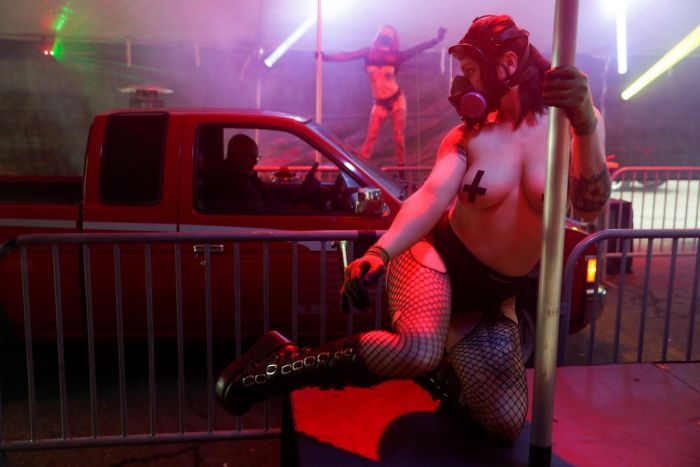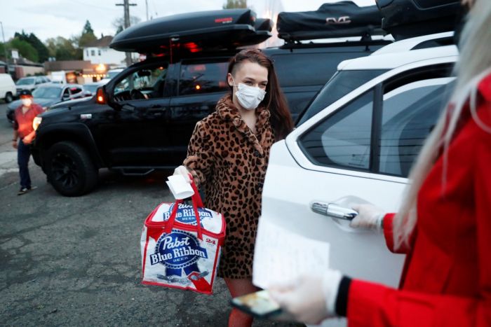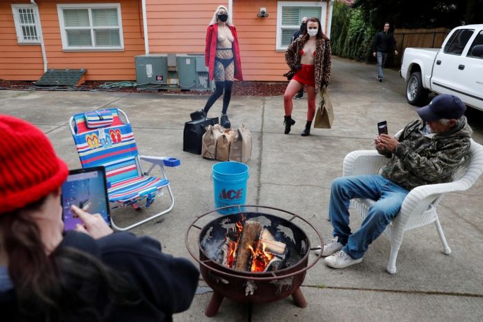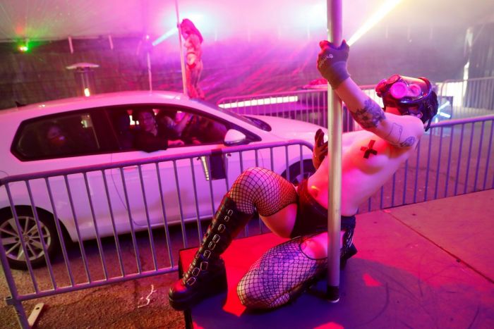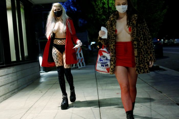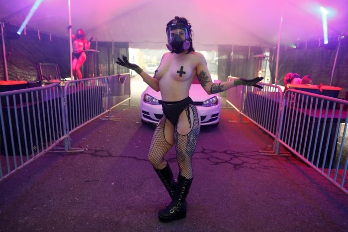 Стриптиз-клуб Lucky Devil Lounge в американском городе Портленд (штат Орегон) в условиях карантина занимается не только доставкой еды, но и устраивает выступления танцовщиц в проходных танцевальных палатках go-go. Все стриптизерши во время выступлений носят средства индивидуальной защиты. И это не мешает им принимать чаевые от зрителей.