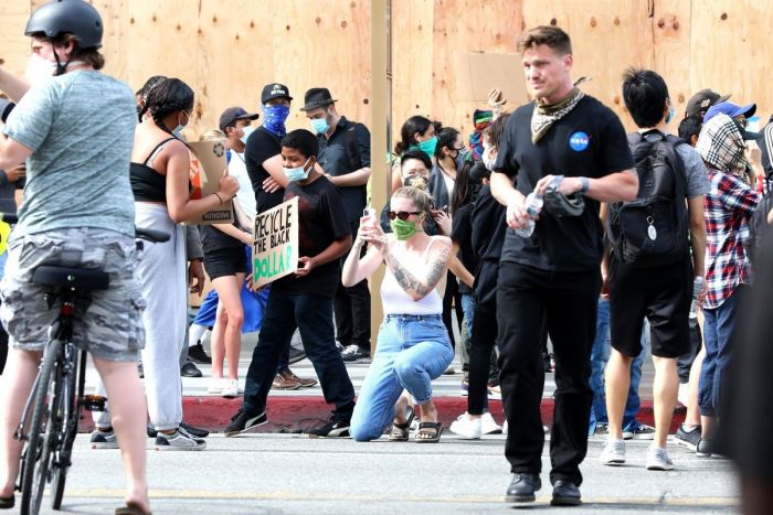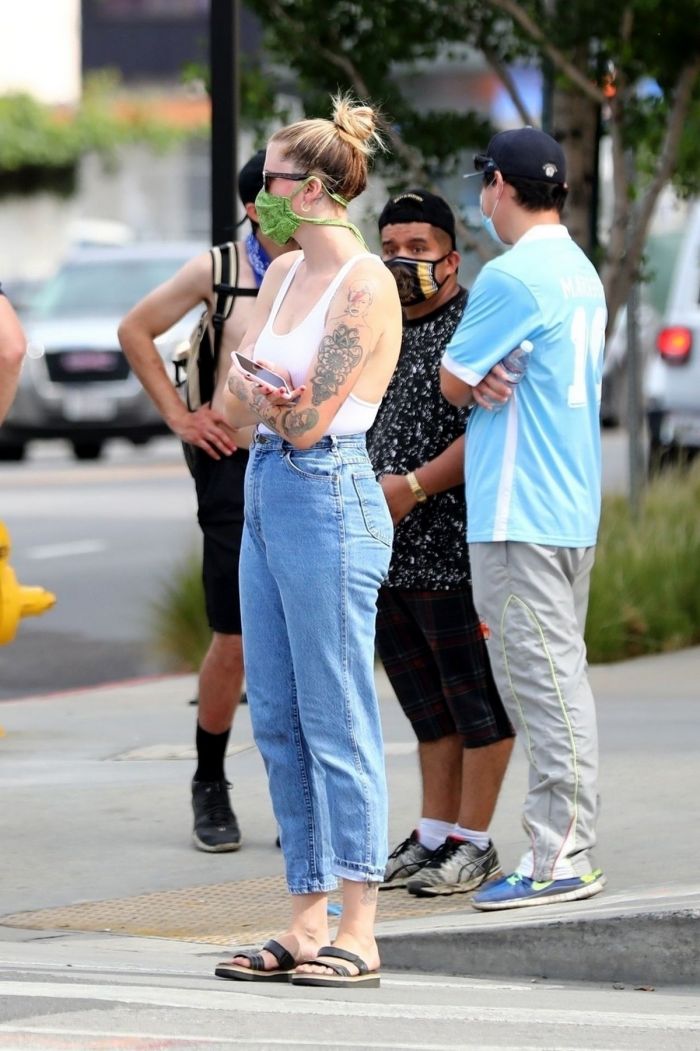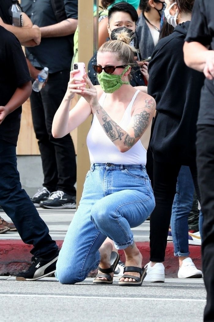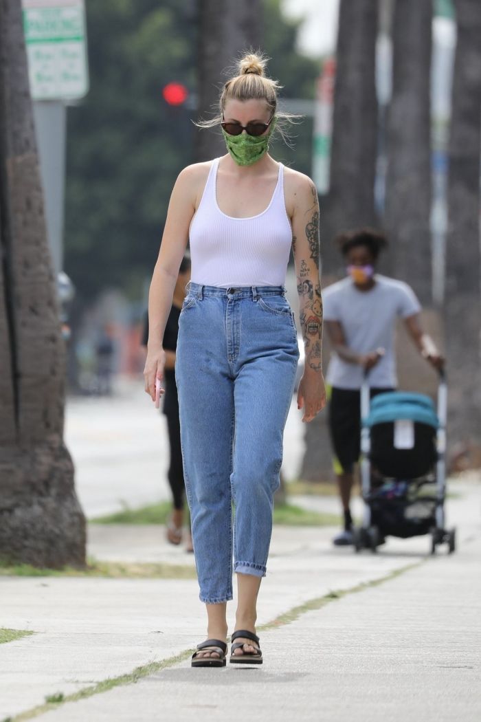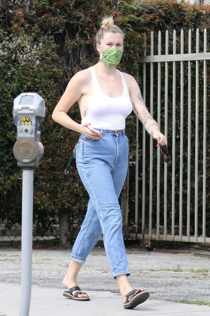 24-летняя американская модель и актриса, кинопродюсер, диджей, дочь Ким Бейсингер и Алека Болдуина, Айрленд Болдуин (Ireland Baldwin) в белой маечке без бюстгальтера была сфотографирована улице в Голливуде. Девушка приняла участие в протестной акции.
