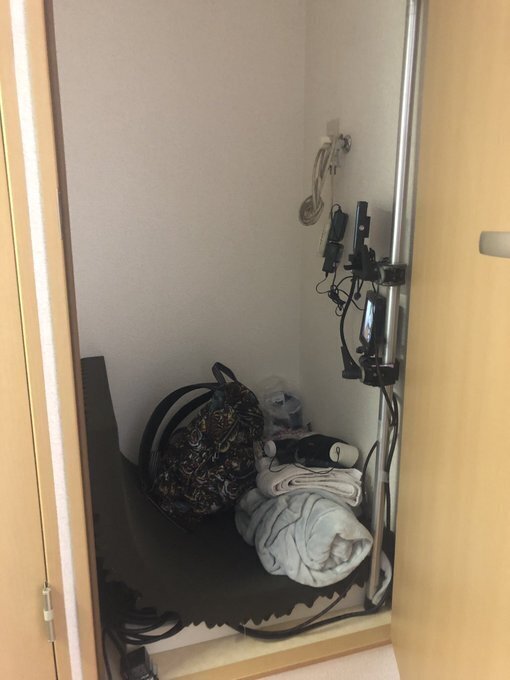 Человек в кладовке - это режиссёр. В Твиттере он пожаловался, что работает в индустрии пять лет, а всё ещё сидит в кладовке.