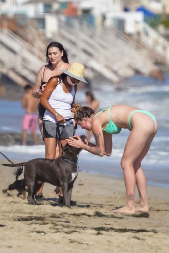 24-летняя американская модель и актриса, кинопродюсер, диджей, дочь Ким Бейсингер и Алека Болдуина, Айрленд Болдуин (Ireland Baldwin) с друзьями на пляже в Малибу.