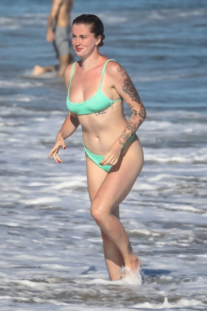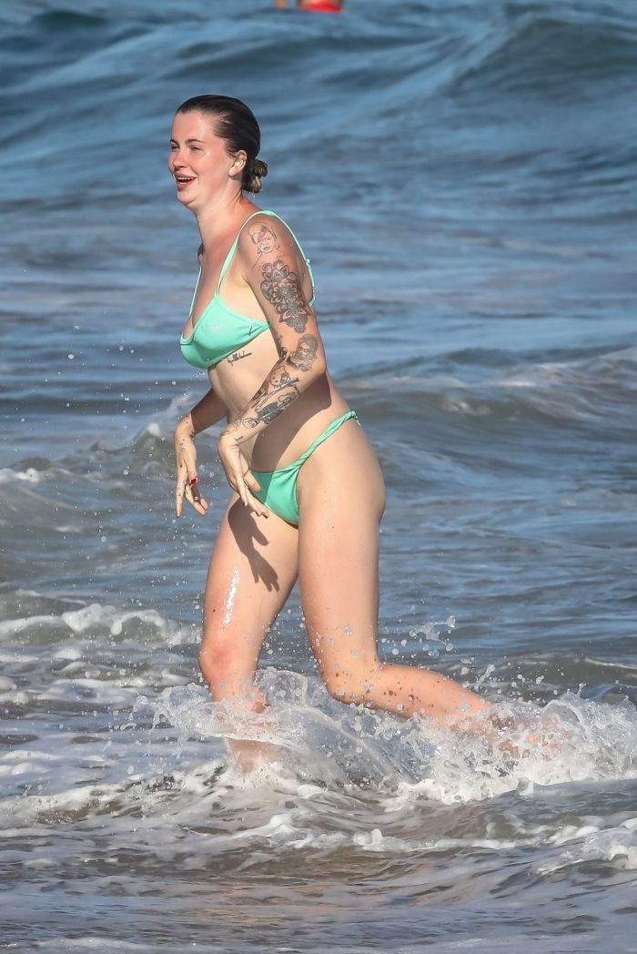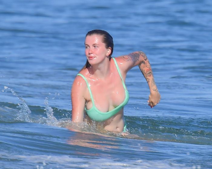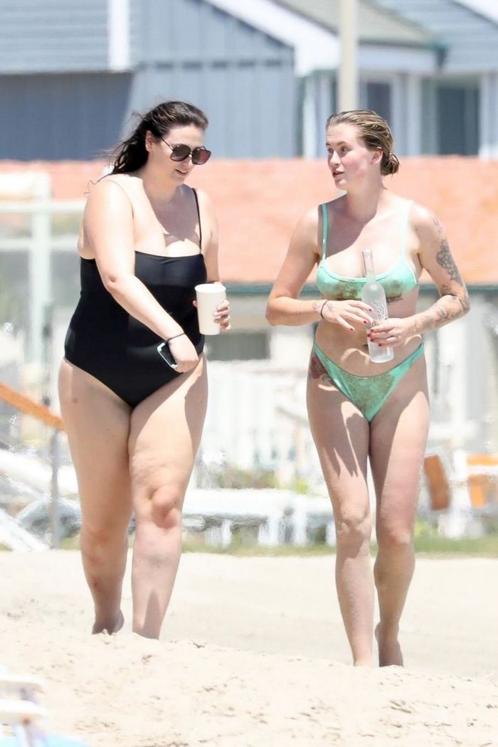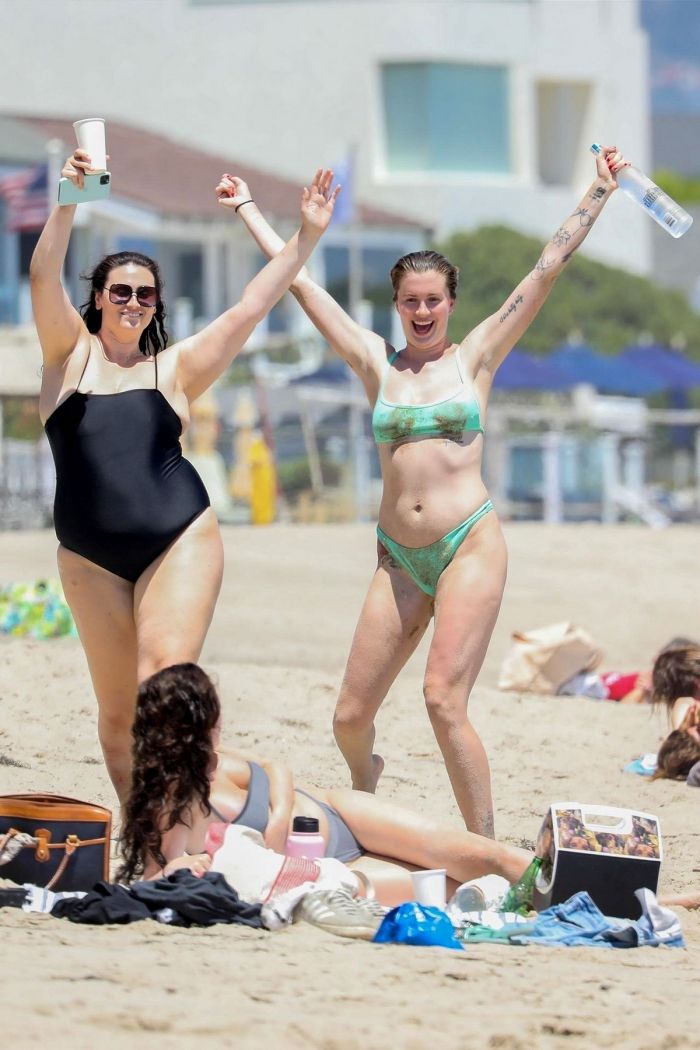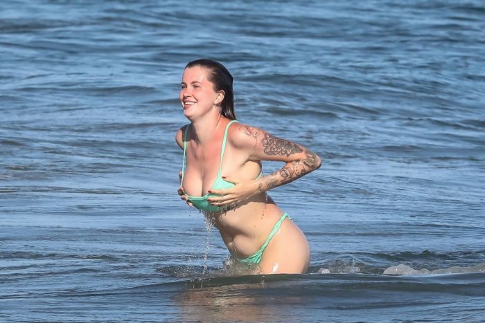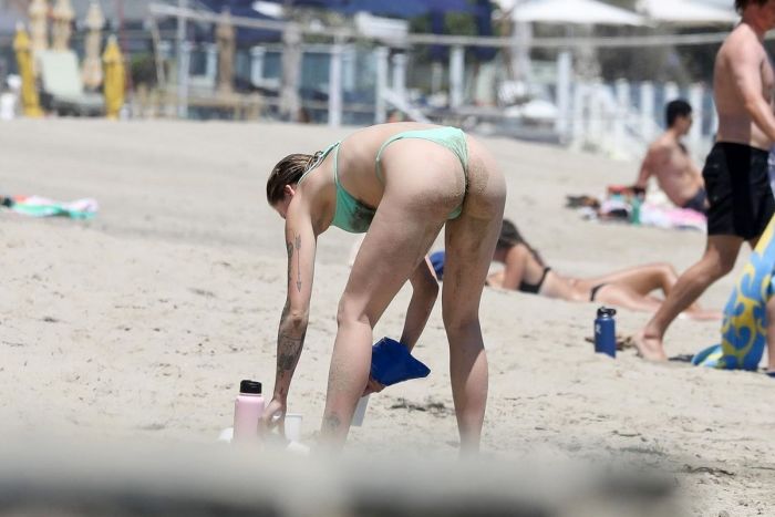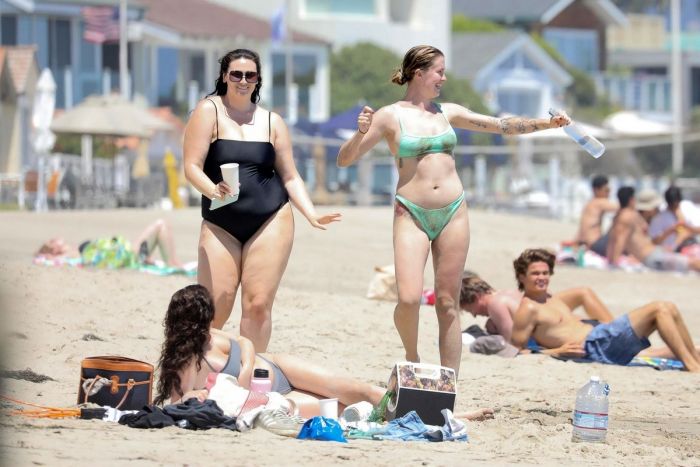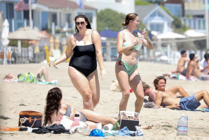 24-летняя американская модель и актриса, кинопродюсер, диджей, дочь Ким Бейсингер и Алека Болдуина, Айрленд Болдуин (Ireland Baldwin) на пляже с друзьями