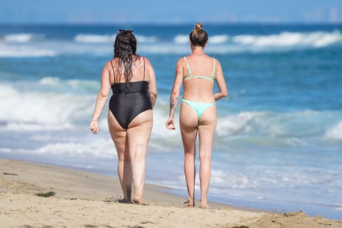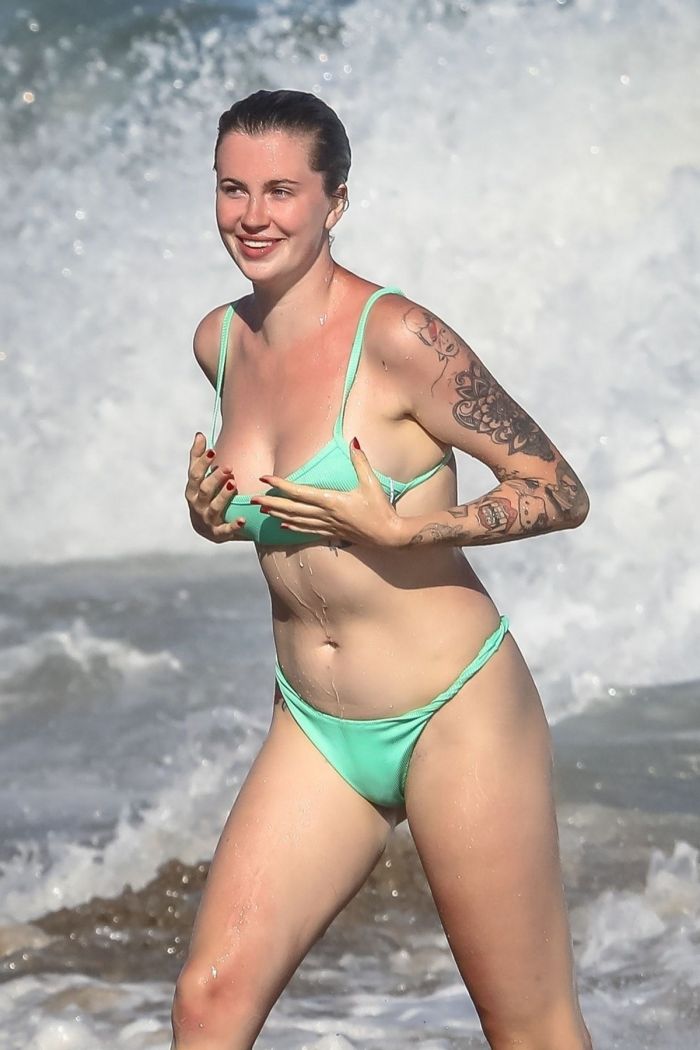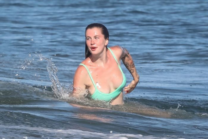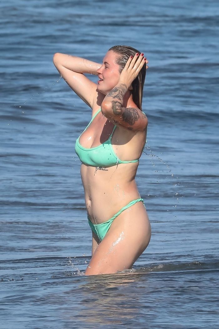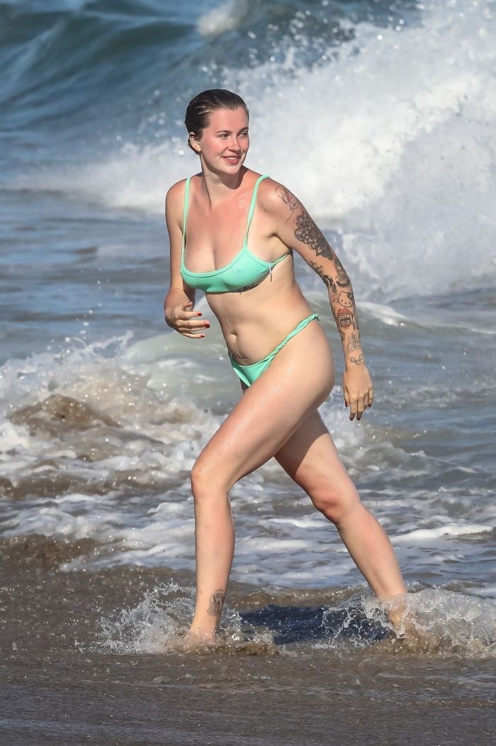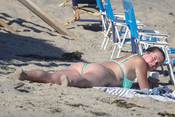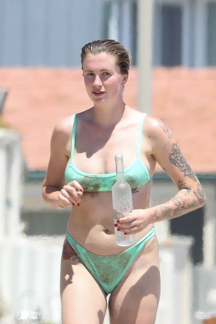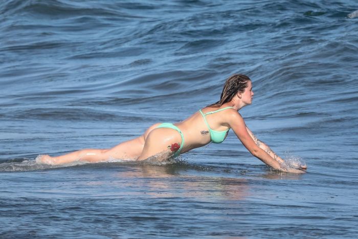 24-летняя американская модель и актриса, кинопродюсер, диджей, дочь Ким Бейсингер и Алека Болдуина, Айрленд Болдуин (Ireland Baldwin) на пляже с друзьями