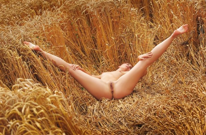 Любая девушка не откажется от красивой эротической фотосессии. Хорошо, что у нашей рыжеволосой героини есть парень, который готов ей помочь реализовать мечту и готов для нее устроить откровенную фотосессию. А чтоб фотографии были сексуальными, девушка захотела раздеться наголо на пшеничном поле. Получается отличное сочетание рыжей девушки на золотистом поле. Наша героиня трогает большие колоски и показывает красивую попку. А как только сняла платье, то уже стала нас баловать голым телом…
