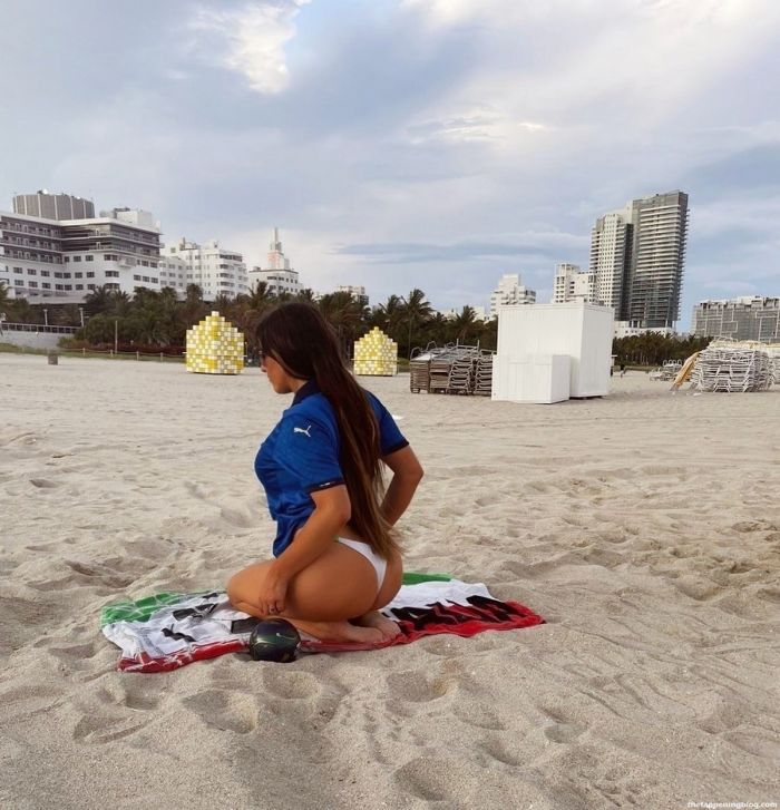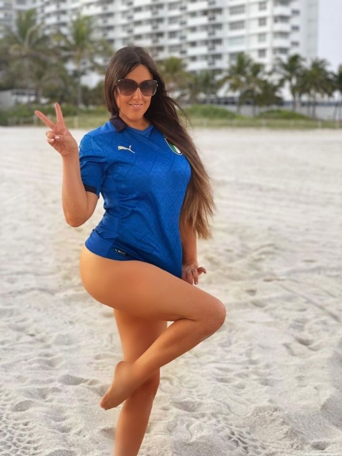 39-летняя итало-американская модель Клаудия Романи (Claudia Romani) устроила фотосессию в поддержку сборной Италии по футболу на пляже в Майами.