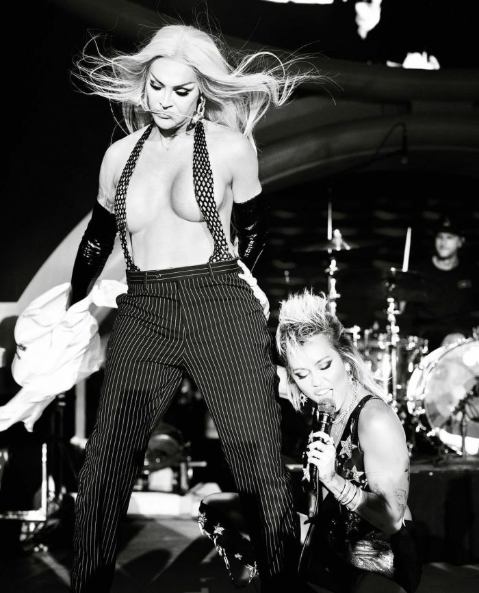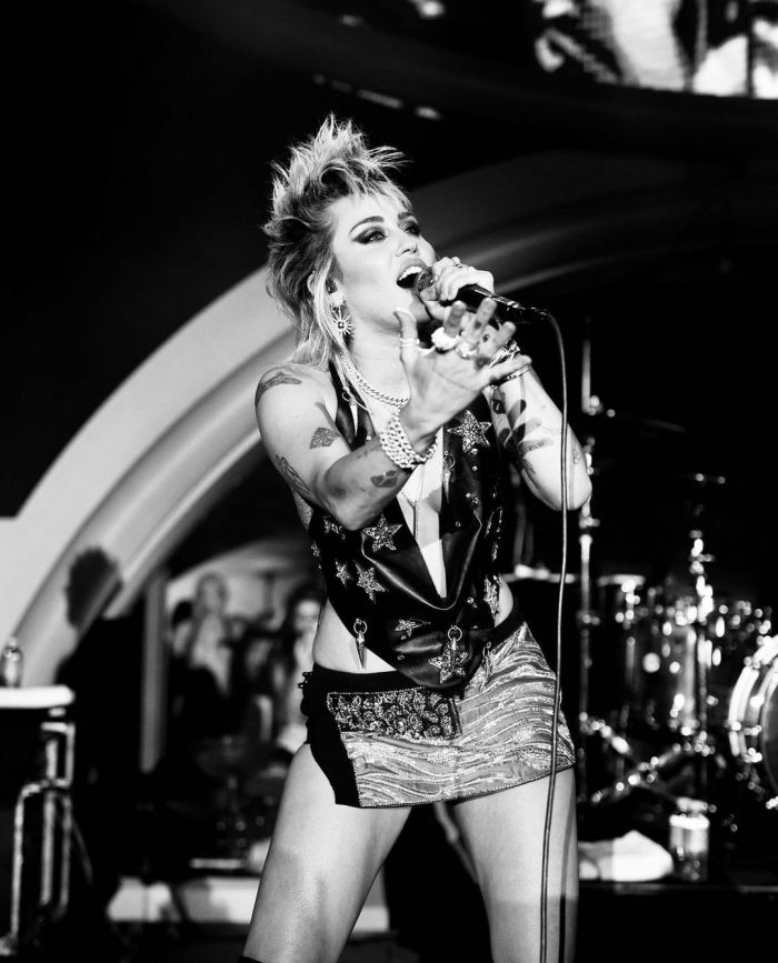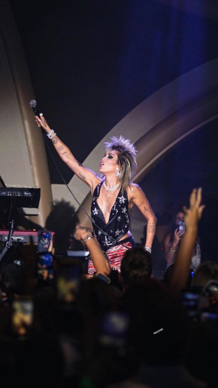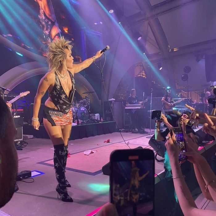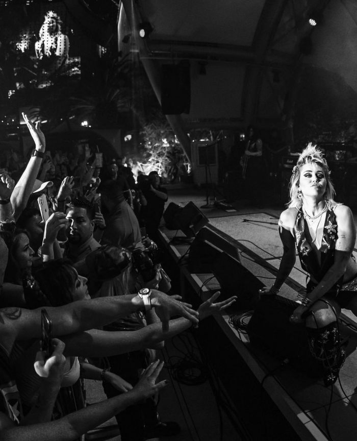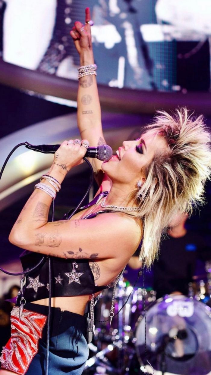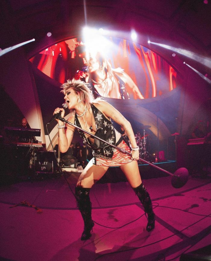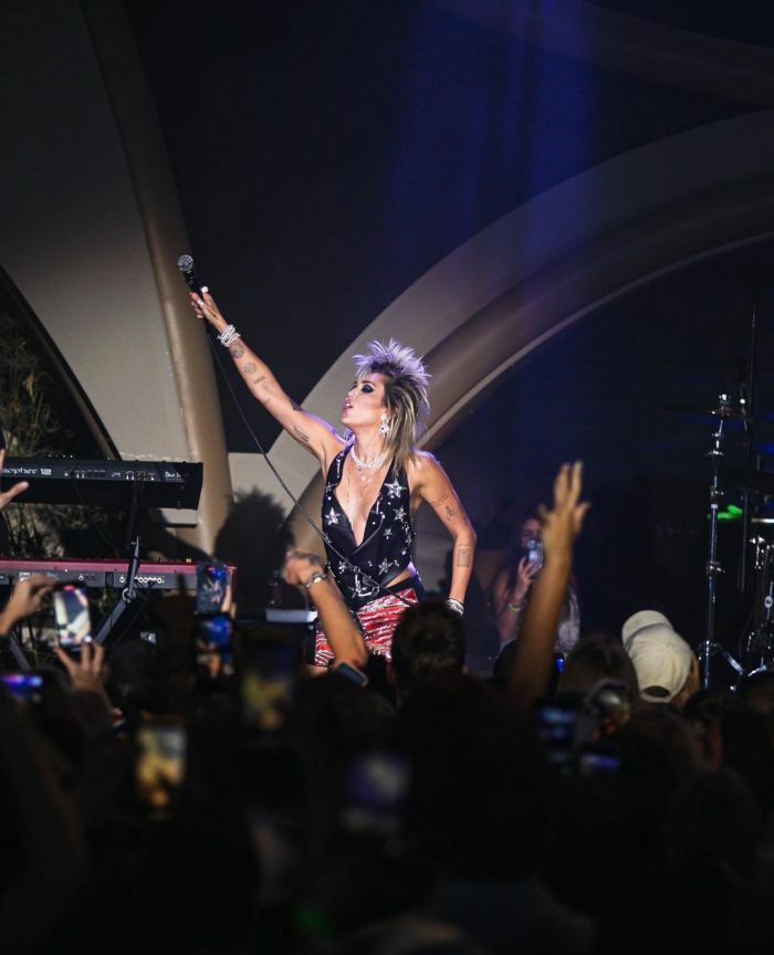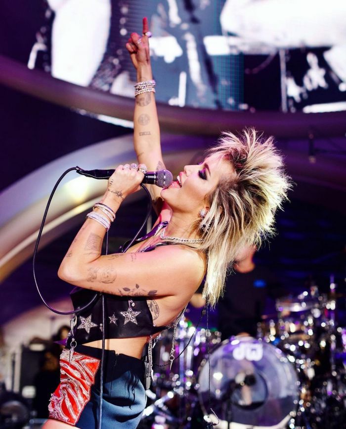 28-летняя американская певица, автор песен и актриса Майли Сайрус (Miley Cyrus) на концерте в Resorts World Лас-Вегас.