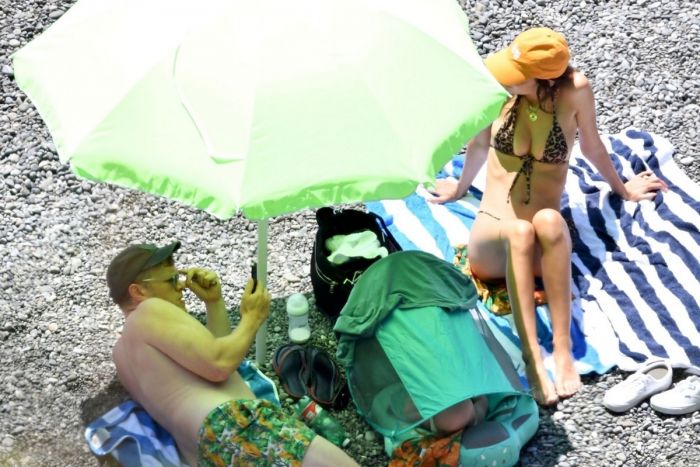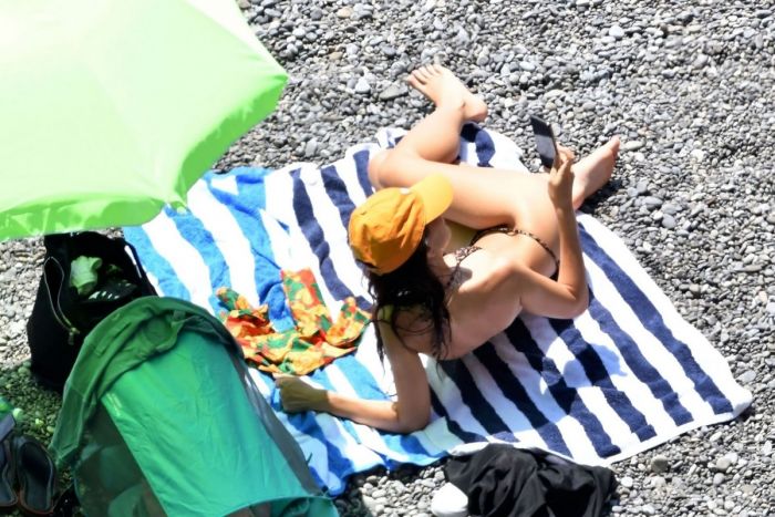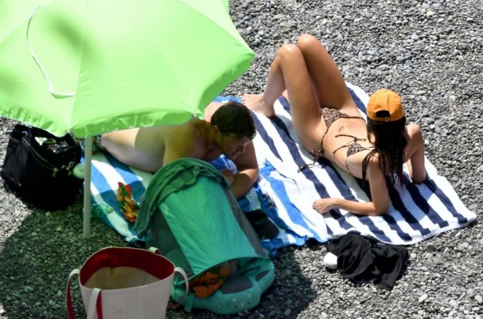 30-летняя американская модель и актриса Эмили Ратаковски (Emily Ratajkowski) засветила сосок во время отдыха на пляже в Позитано, Италия.