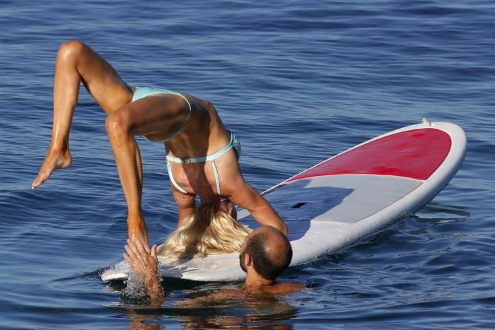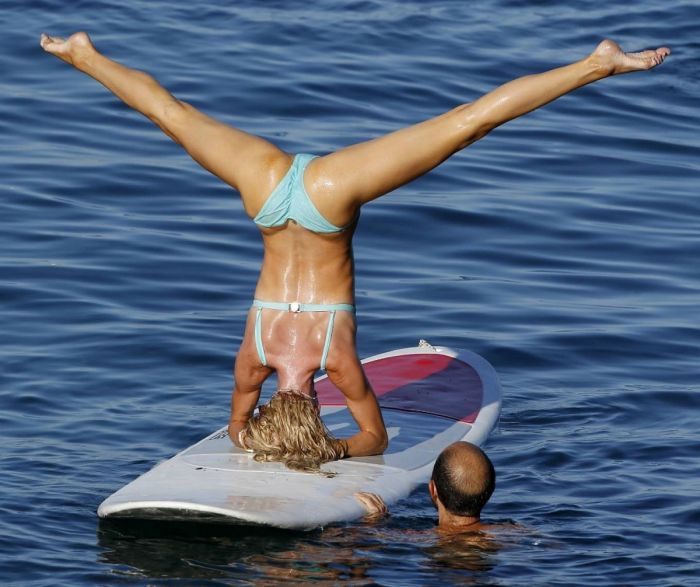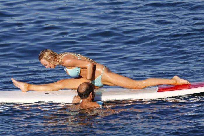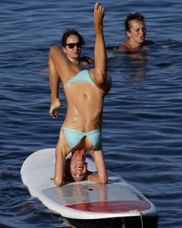 31-летняя американская модель и актриса Кристин Куинн (Christine Quinn) занимается йогой на доске
