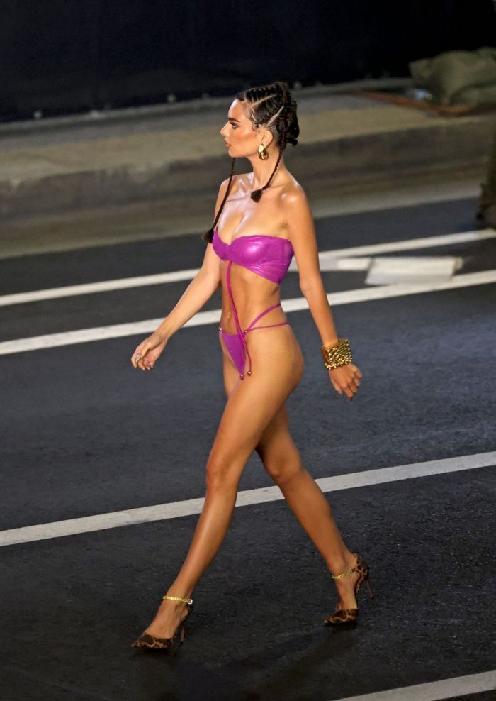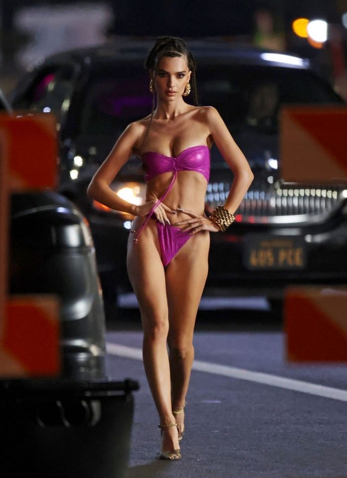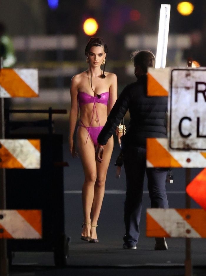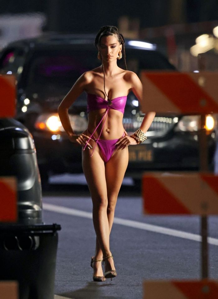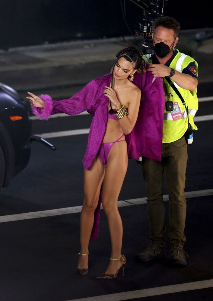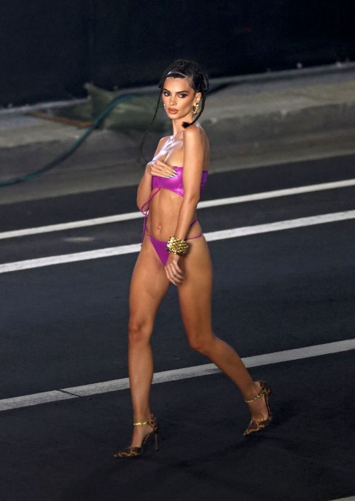 30-летняя американская модель и актриса Эмили Ратаковски (Emily Ratajkowski) в бикини на шоу Рианны Savage X Fenty в центре Лос-Анджелеса.
