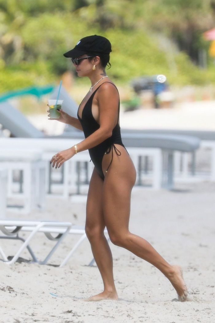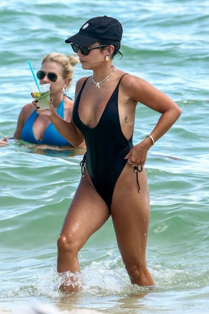 32-летняя американская актриса и певица Ванесса Хадженс (Vanessa Hudgens) в купальнике на пляже в Майами.