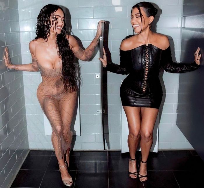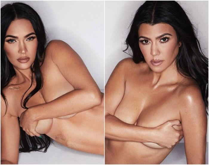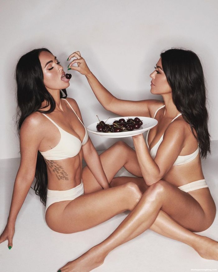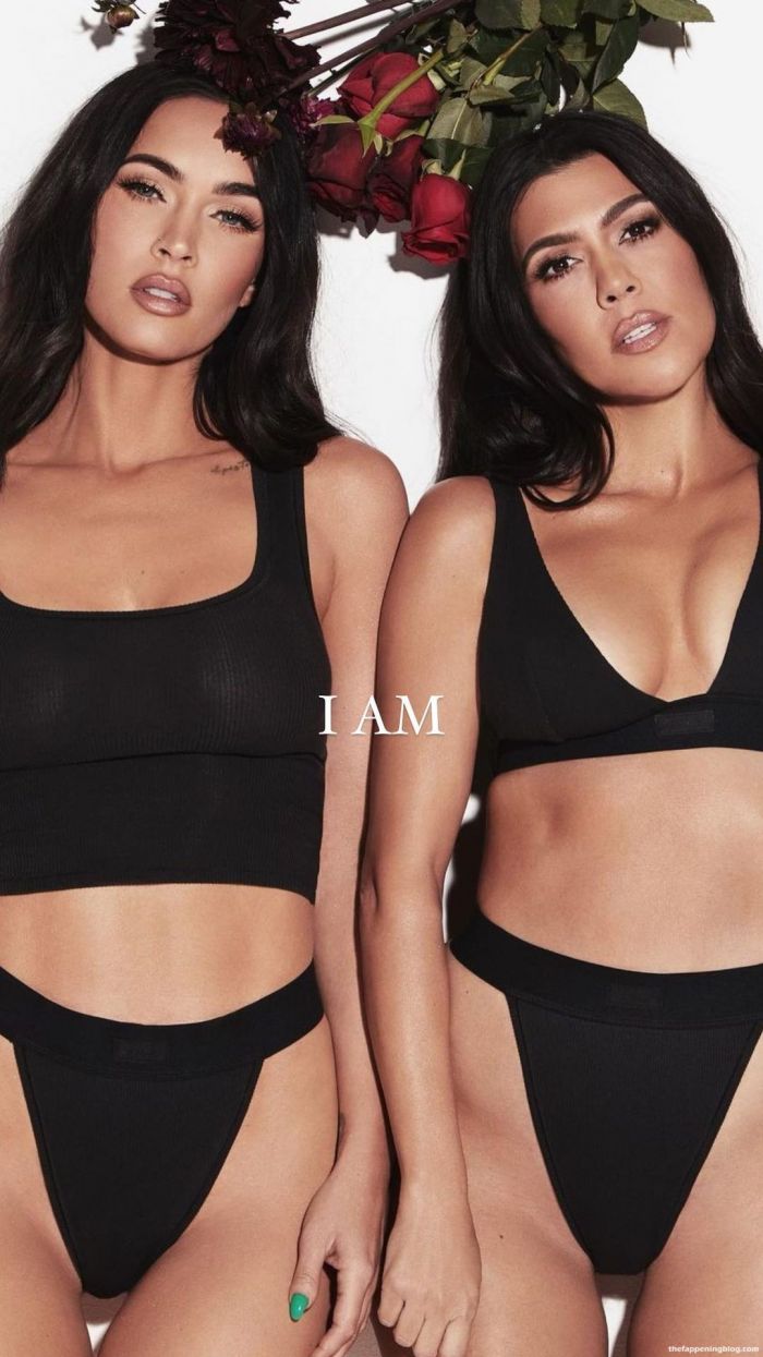 35-летняя американская актриса и фотомодель Меган Фокс (Megan Fox) и 42-летняя американская фотомодель, актриса, бизнесвумен Кортни Кардашян (Kourtney Kardashian) в позируют в нижнем белье для новой коллекции SKIMS.